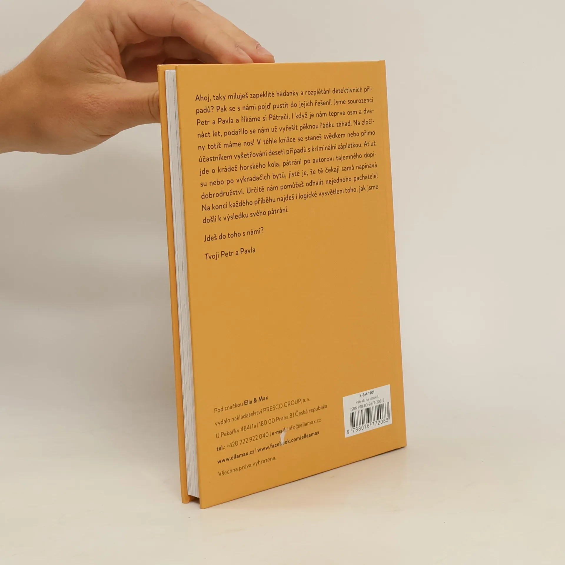 Pusťte se do rozplétání zapeklitých hádanek a detektivních případů společně se sourozenci Petrem a Pavlou, kteří si říkají Pátrači. Je jim teprve osm a dvanáct let, ale podařilo se jim už vyřešit pěknou řádku záhad. Na zločiny totiž mají nos! V téhle knížce se stanete svědky nebo přímo účastníky vyšetřování deseti případů s kriminální zápletkou. Ať už jde o krádež horského kola, pátrání po autorovi tajemného dopisu nebo po vykradačích bytů, jisté je, že vás čekají samá napínavá dobrodružství. Na konci každého příběhu najdete i logické vysvětlení toho, jak sourozenci došli k výsledku svého pátrání.