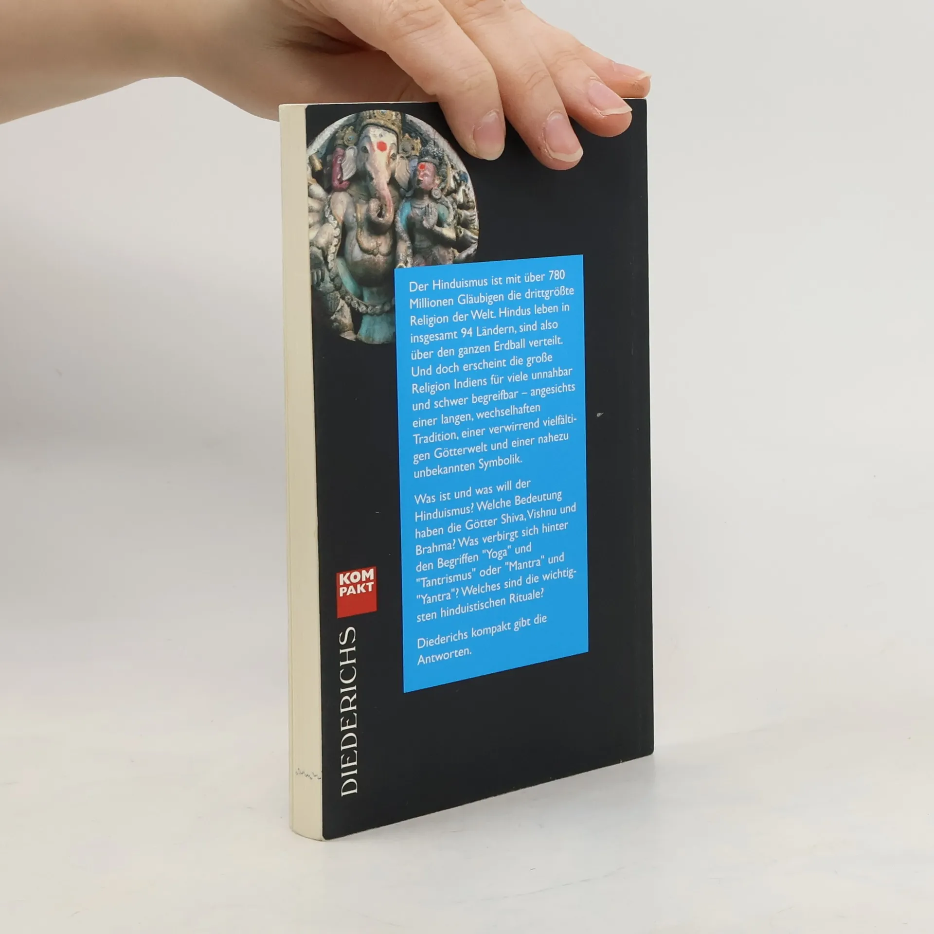 Der Hinduismus ist mit über 780 Millionen Gläubigen die drittgrößte Religion der Welt und in 94 Ländern verbreitet. Trotz seiner weiten Verbreitung wirkt er für viele unnahbar. Diederichs kompakt beantwortet zentrale Fragen zu den Göttern, Begriffen wie Yoga und Tantrismus sowie den wichtigsten Ritualen.