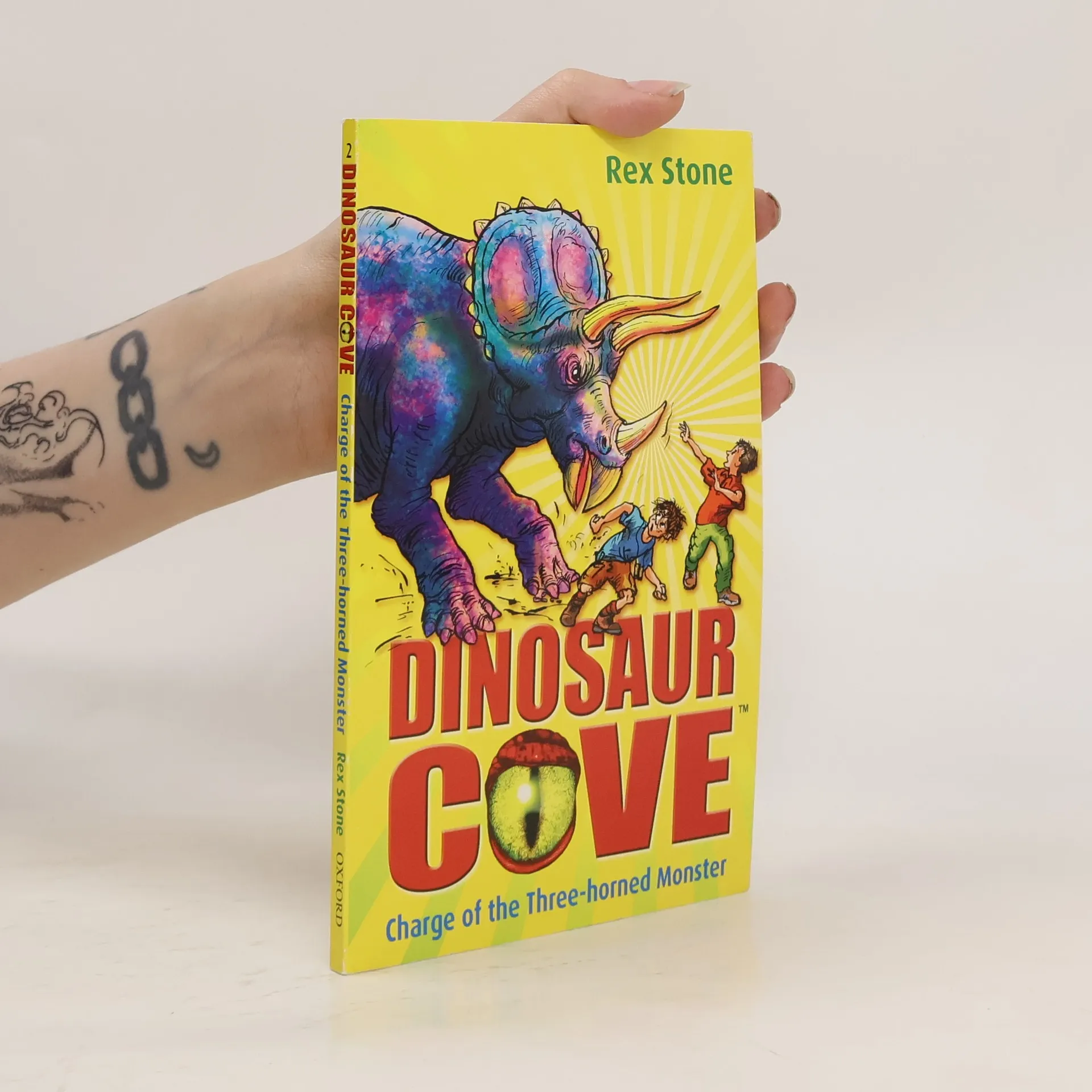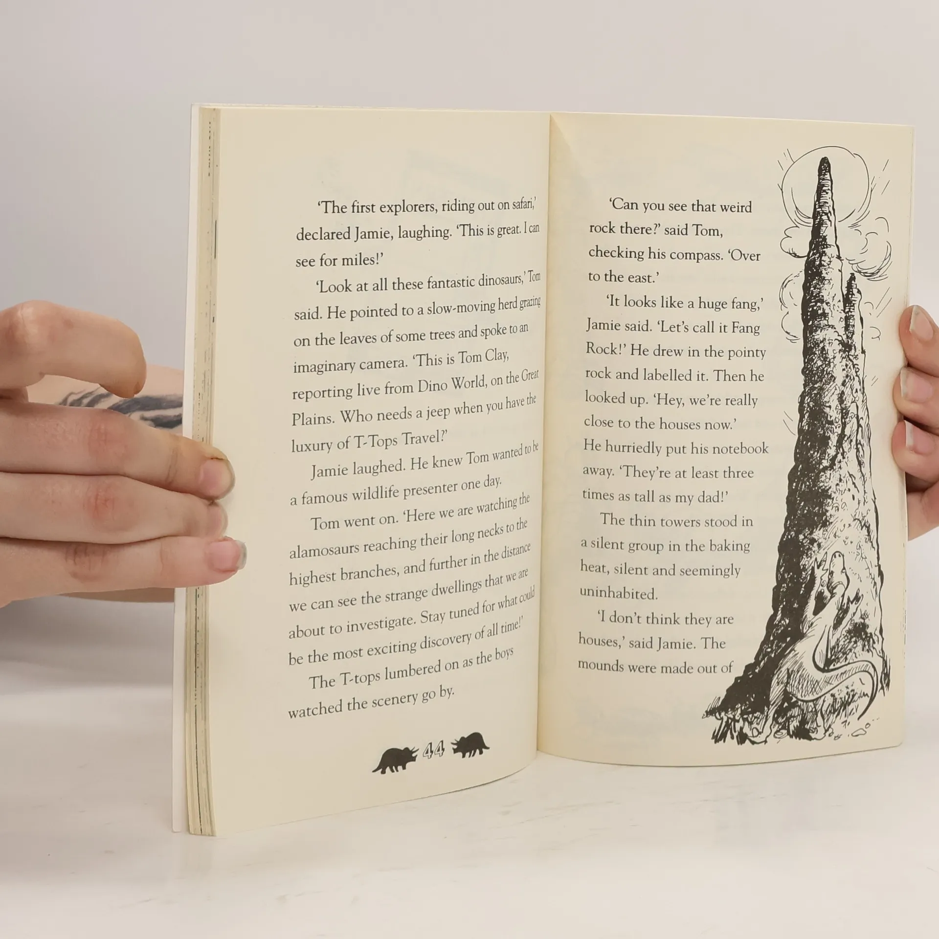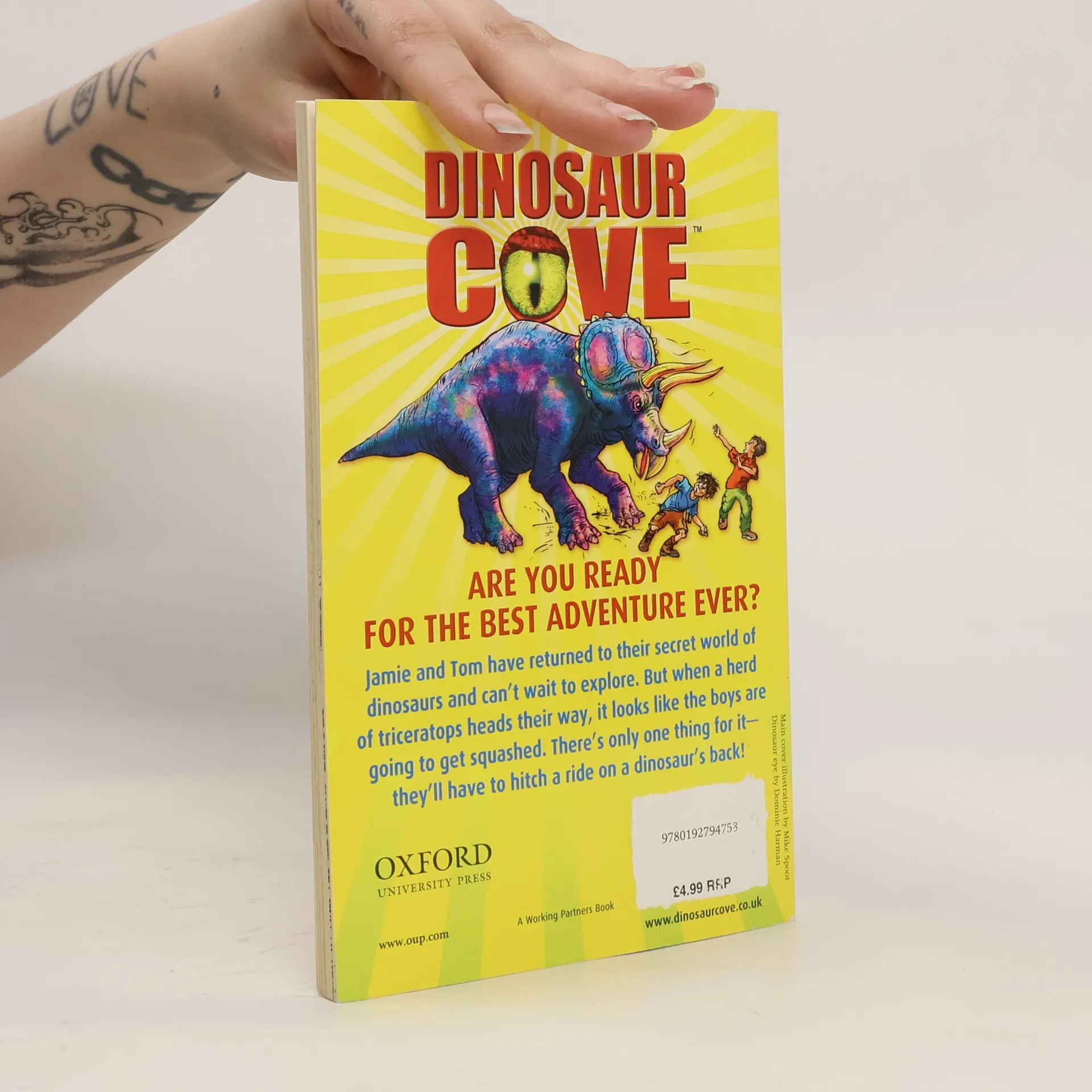 Jamie and Tom have returned to their secret world of dinosaurs and can't wait to explore. But when a herd of triceratops heads their way, it looks like the boys are going to get squashed. There's only one thing for it--they'll have to hitch a ride on a dinosaur's back!