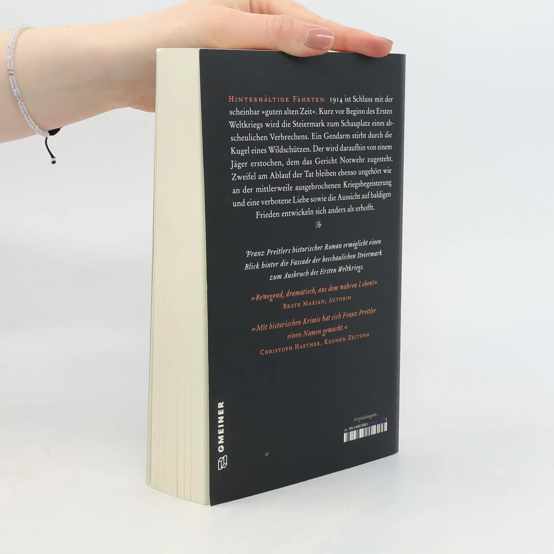 1914 ist Schluss mit der scheinbar »guten alten Zeit«. Kurz vor Beginn des Ersten Weltkriegs wird die Steiermark zum Schauplatz eines abscheulichen Verbrechens. Ein Gendarm stirbt durch die Kugel eines Wildschützen. Der wird daraufhin von einem Jäger erstochen, dem das Gericht Notwehr zugesteht. Zweifel am Ablauf der Tat bleiben ebenso ungehört wie an der mittlerweile ausgebrochenen Kriegsbegeisterung und eine verbotene Liebe sowie die Aussicht auf baldigen Frieden entwickeln sich anders als erhofft.