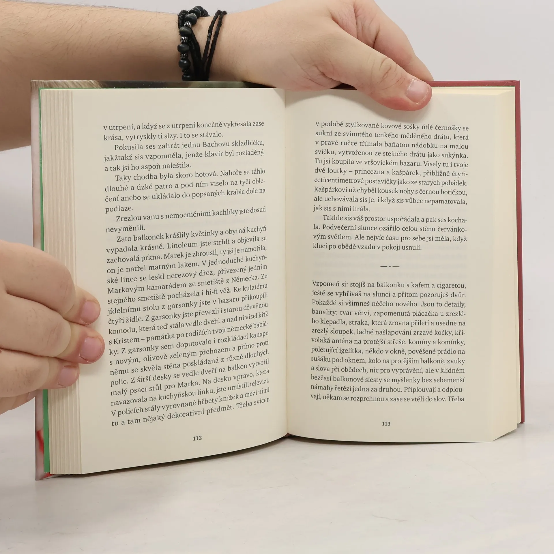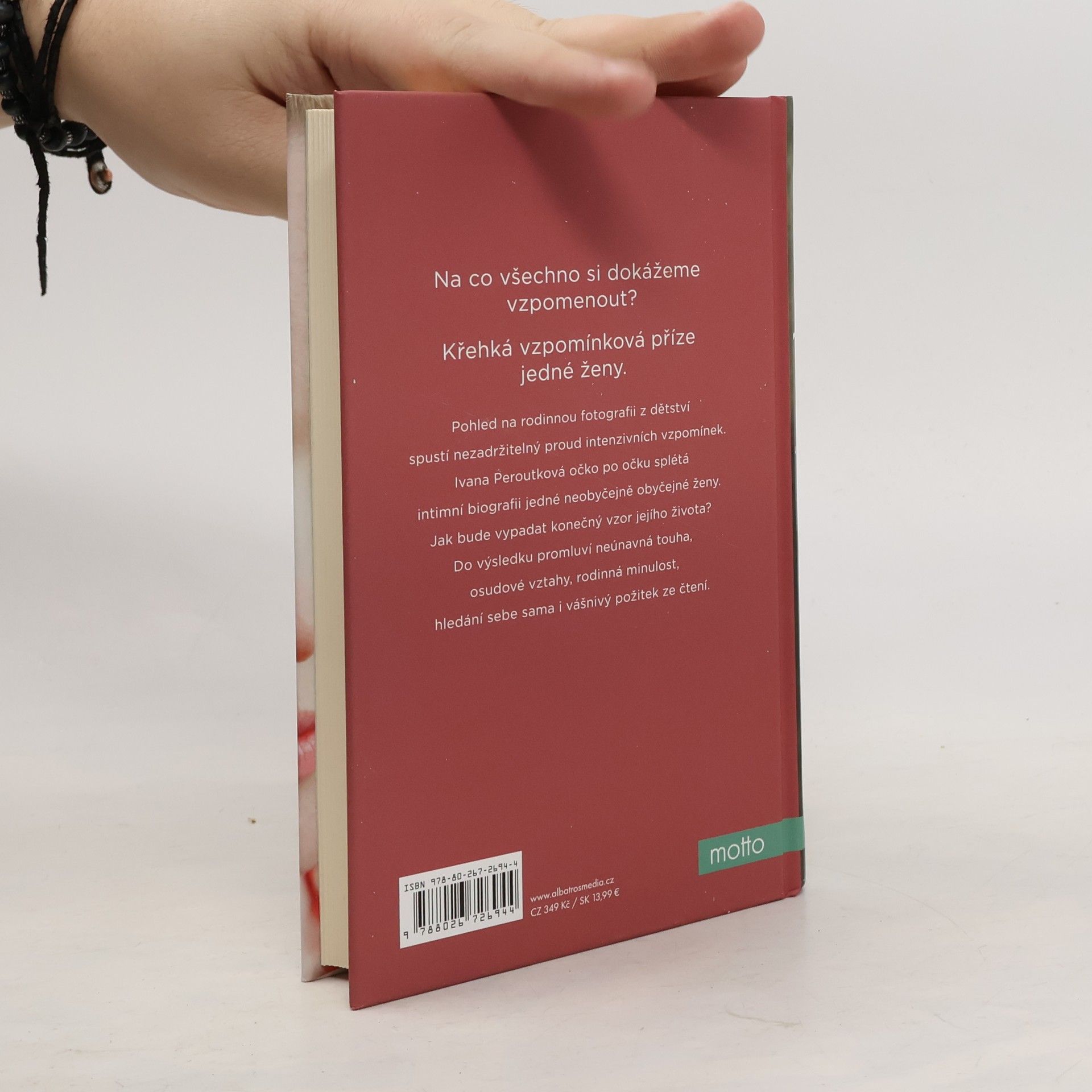 Románová fiktivní biografie přinášející citlivý vhled do vnitřního života ženy. Na co všechno si dokážeme vzpomenout? Křehká vzpomínková příze jedné ženy. Pohled na rodinnou fotografii z dětství spustí nezadržitelný proud intenzivních vzpomínek. Ivana Peroutková očko po očku splétá intimní biografii jedné neobyčejně obyčejné ženy. Jak bude vypadat konečný vzor jejího života? Do výsledku promluví neúnavná touha, osudové vztahy, rodinná minulost, hledání sebe sama i vášnivý požitek ze čtení. Nakladatelská anotace.