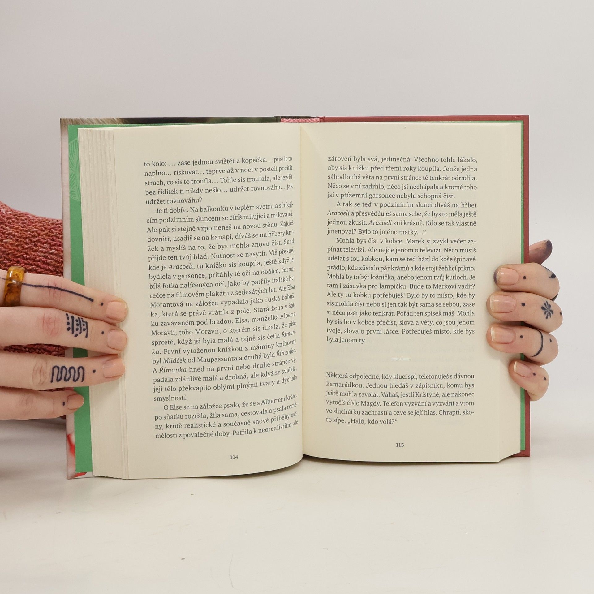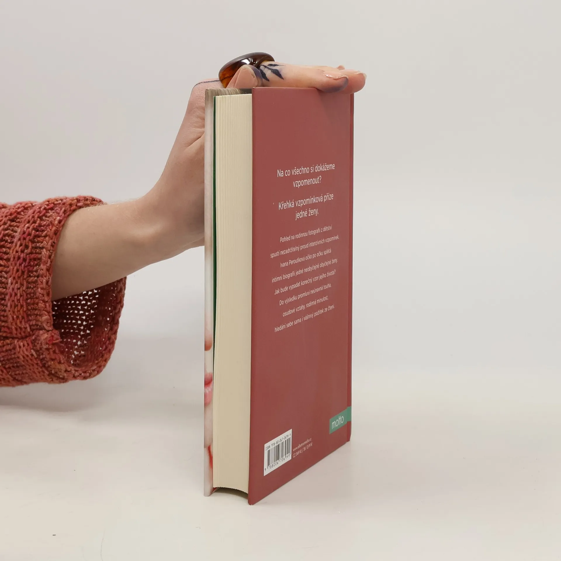 Románová fiktivní biografie přinášející citlivý vhled do vnitřního života ženy. Na co všechno si dokážeme vzpomenout? Křehká vzpomínková příze jedné ženy. Pohled na rodinnou fotografii z dětství spustí nezadržitelný proud intenzivních vzpomínek. Ivana Peroutková očko po očku splétá intimní biografii jedné neobyčejně obyčejné ženy. Jak bude vypadat konečný vzor jejího života? Do výsledku promluví neúnavná touha, osudové vztahy, rodinná minulost, hledání sebe sama i vášnivý požitek ze čtení. Nakladatelská anotace.