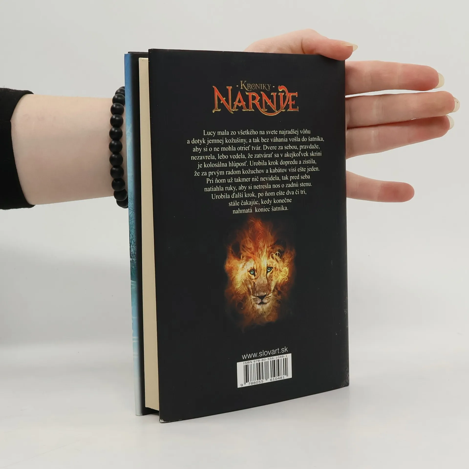 Kroniky Narnie si získali srdcia miliónov čitateľov v celom „našom“ svete. V našom preto, lebo Narnia je iným, ďalším svetom, ktorý sa podarilo objaviť deťom. Je svetom plným čarodejníkov, víl a škriatkov, hovoriacich zvierat, dobra a zla, ale predovšetkým je svetom tisícov napínavých adobrodružných príbehov. Prvý je vyrozprávaný v knihe Čarodejníkov synovec. Prečítajte si druhý V Európe zúri vojna a deti posielajú rodičia z Londýna na vidiek, aby ich uchránili pred hrôzami bombardovania. Štvorica súrodencov sa takto dostane do vidieckeho sídla nemenovaného profesora, kde pri hre objavia skriňu na šaty, cez ktorú sa dá dostať do Narnie. Tú medzičasom ovládla zlá Jádis, ktorá má teraz meno Biela čarodejnica, lebo svoju krajinu zakliala tak, aby v nej bola navždy zima a nikdy Vianoce. Podľa starej veštby sa jej vláda má skončiť až vtedy, keď do trónov na hrade Cair Paravel zasadnú štyria ľudia. Zatiaľ však kruto vládne a mení všetkých, čo sa jej znepáčia, na kamenné sochy. Zachrániť ich môže iba Aslanov dych.