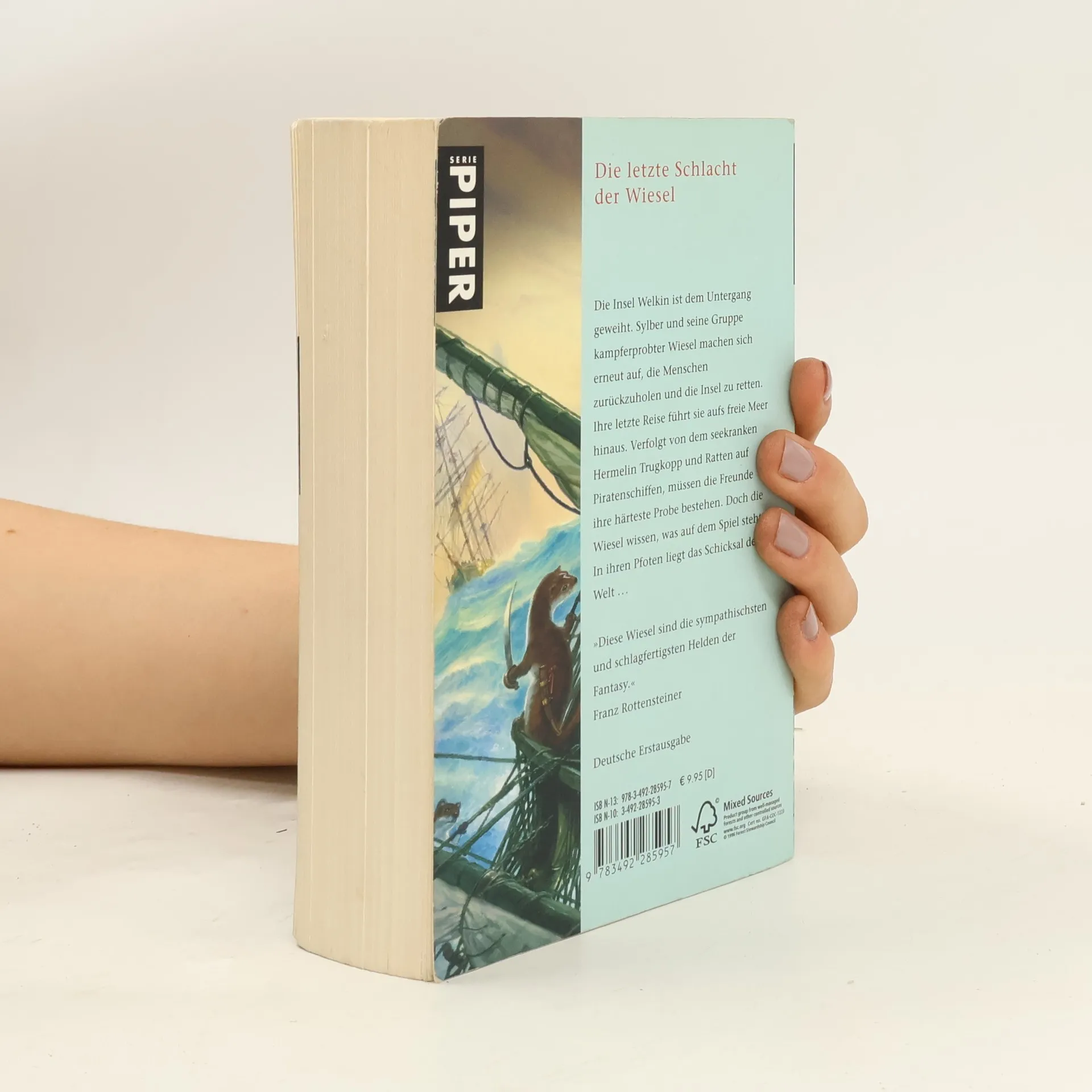 Die Insel Welkin ist dem Untergang geweiht, seit die Menschen verschwunden sind und die Dämme zu brechen drohen. Doch Sylber und seine Gruppe kampferprobter Wiesel machen sich auf, die Menschen zurückzuholen und die Insel zu retten. Ihre letzte Reise führt sie aufs freie Meer hinaus. Verfolgt von dem seekranken Hermelin-Sheriff Trugkopp und bedroht durch Ratten auf Piratenschiffen, müssen die Freunde ihre härteste Probe bestehen. Doch die Wiesel wissen, was auf dem Spiel steht: In ihren Pfoten liegt das Schicksal der Welt Mit diesem Band führt Garry Kilworth seine Kult-Saga auf einen turbulenten und dramatischen Höhepunkt zu.»Diese Wiesel sind die sympathischsten und schlagfertigsten Helden der Fantasy.«Franz Rottensteiner