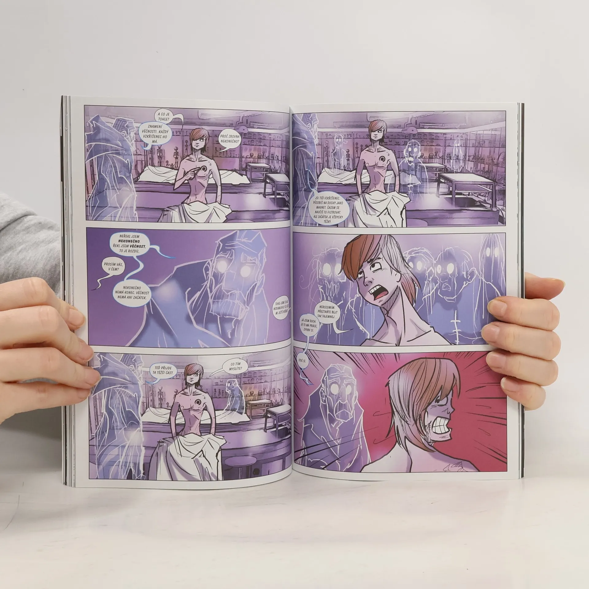Hororland. Trpíte nočními můrami, strachem ze tmy, nebo nespavostí? TENTO KOMIKS NENÍ NIC PRO VÁS! Martin Lafetka donedávna patřil k těm nebohým náctiletým, kteří se chtějí za každou cenu odlišovat od okolí. Snad by raději zemřel, jen aby byl zajímavý. Ale pozor na přání…! Když se probudíte v márnici se znamením věčnosti na hrudi a duchové začnou vstávat z hrobů, tajemné síly světa živých i mrtvých se budou přetahovat o vaši duši, dali byste cokoli za to, abyste aspoň chvíli byli zase normální. To je však jen začátek… Martinovy pravé schopnosti se brzy projeví.Trpíte nočními můrami, strachem ze tmy, nebo nespavostí? TENTO KOMIKS NENÍ NIC PRO VÁS! Martin Lafetka donedávna patřil k těm nebohým náctiletým, kteří se chtějí za každou cenu odlišovat od okolí. Snad by raději zemřel, jen aby byl zajímavý. Ale pozor na přání…! Když se probudíte v márnici se znamením věčnosti na hrudi a duchové začnou vstávat z hrobů, tajemné síly světa živých i mrtvých se budou přetahovat o vaši duši, dali byste cokoli za to, abyste aspoň chvíli byli zase normální. To je však jen začátek… Martinovy pravé schopnosti se brzy projeví.