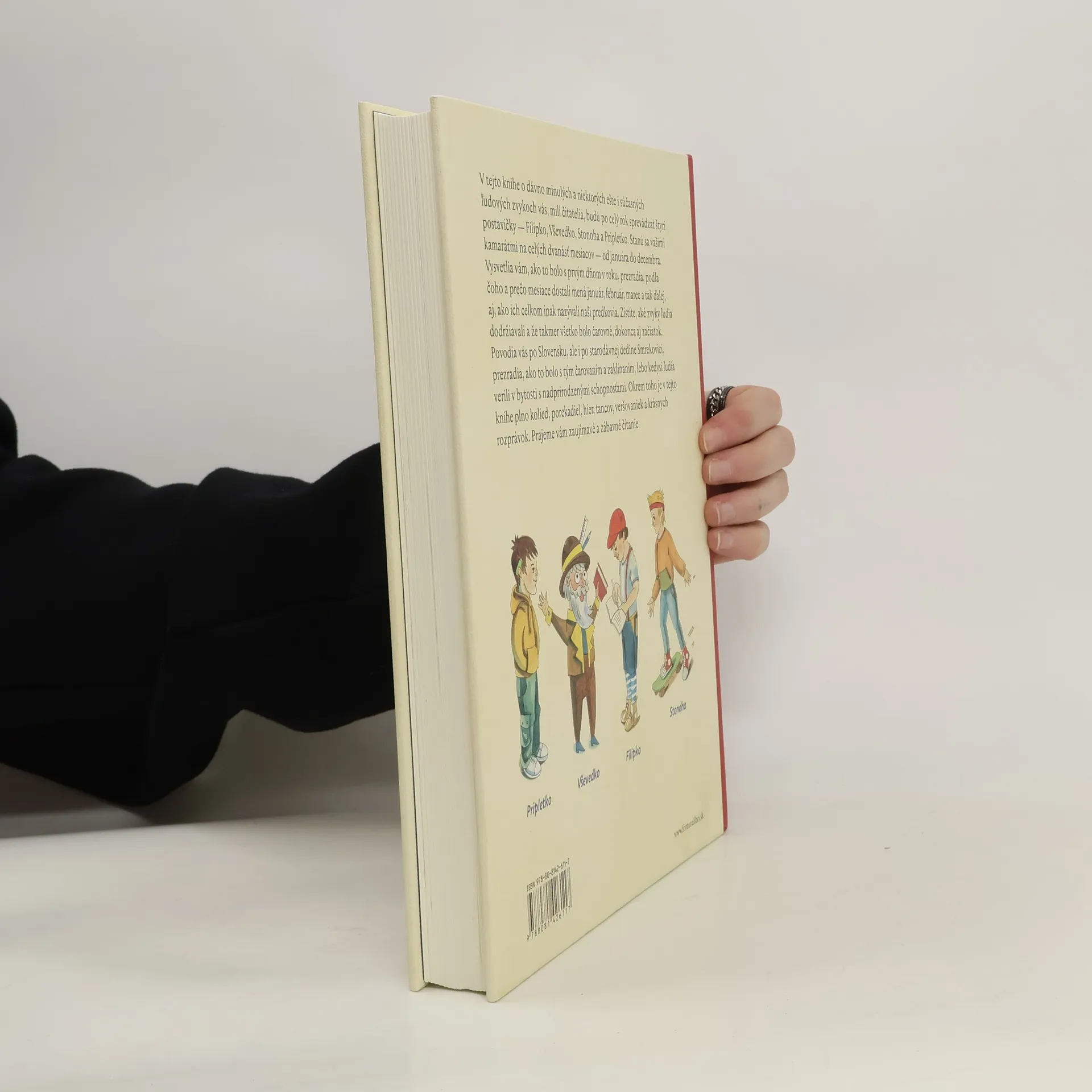 V tejto knihe o dávno minulých a niektorých ešte i súčasných ľudových zvykoch vás, milí čitatelia, budú po celý rok sprevádzať štyri postavičky — Filipko, Vševedko, Stonoha a Pripletko. Stanú sa vašimi kamarátmi na celých dvanásť mesiacov — od januára do decembra. Vysvetlia vám, ako to bolo s prvým dňom v roku, prezradia, podľa čoho a prečo mesiace dostali mená január, február, marec a tak ďalej, aj, ako ich celkom inak nazývali naši predkovia. Zistíte, aké zvyky ľudia dodržiavali a že takmer všetko bolo čarovné, dokonca aj začiatok. Povodia vás po Slovensku, ale i po starodávnej dedine Smrekovici, prezradia, ako to bolo s tým čarovaním a zaklínaním, lebo kedysi ľudia verili v bytosti s nadprirodzenými schopnosťami. Okrem toho je v tejto knihe plno kolied, porekadiel, hier, tancov, veršovaniek a krásnych rozprávok. Prajeme vám zaujímavé a zábavné čítanie.