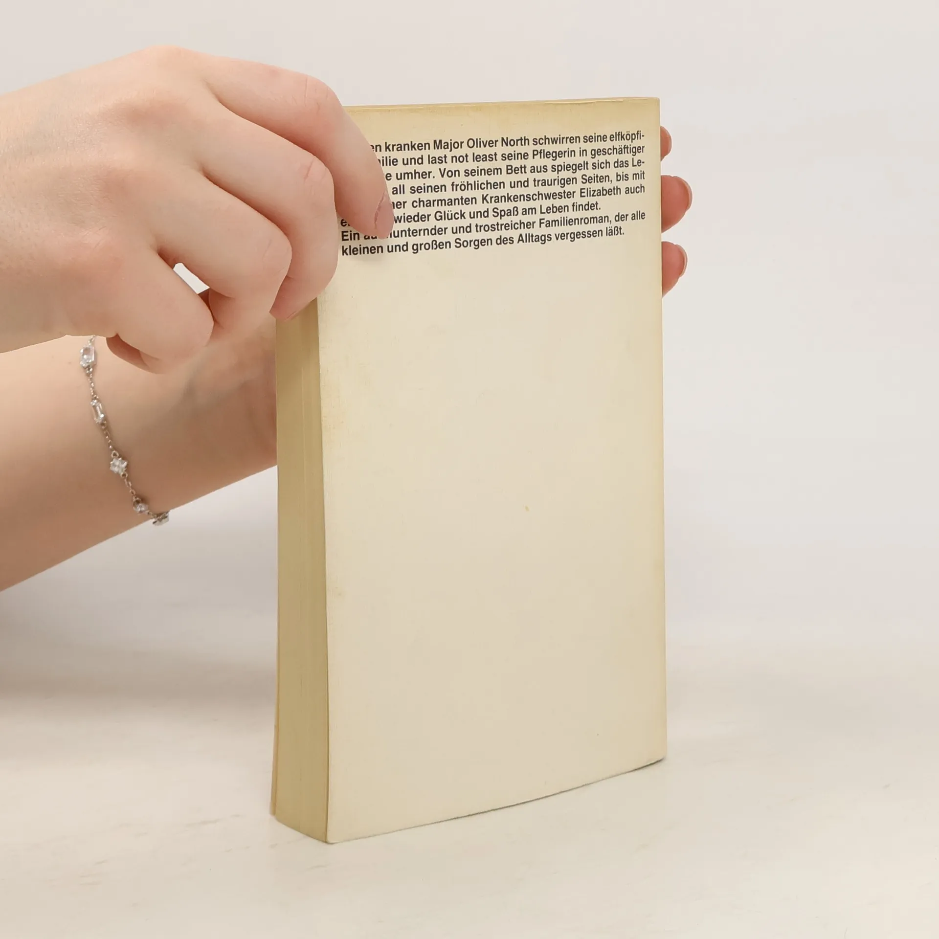 Um den kranken Major Oliver North schwirren seine elfköpfige Familie und last not least seine Pflegerin in geschäftiger Fürsorge umher. Von seinem Bett aus spiegelt sich das Leben von all seinen fröhlichen und traurigen Seiten, bis mit Hilfe seiner charmanten Krankenschwester Elizabeth auch er selbst wieder Glück und Spaß am Leben findet. Ein aufmunternder und trostreicher Familienroman, der alle kleinen und großen Sorgen des Alltags vergessen läßt.