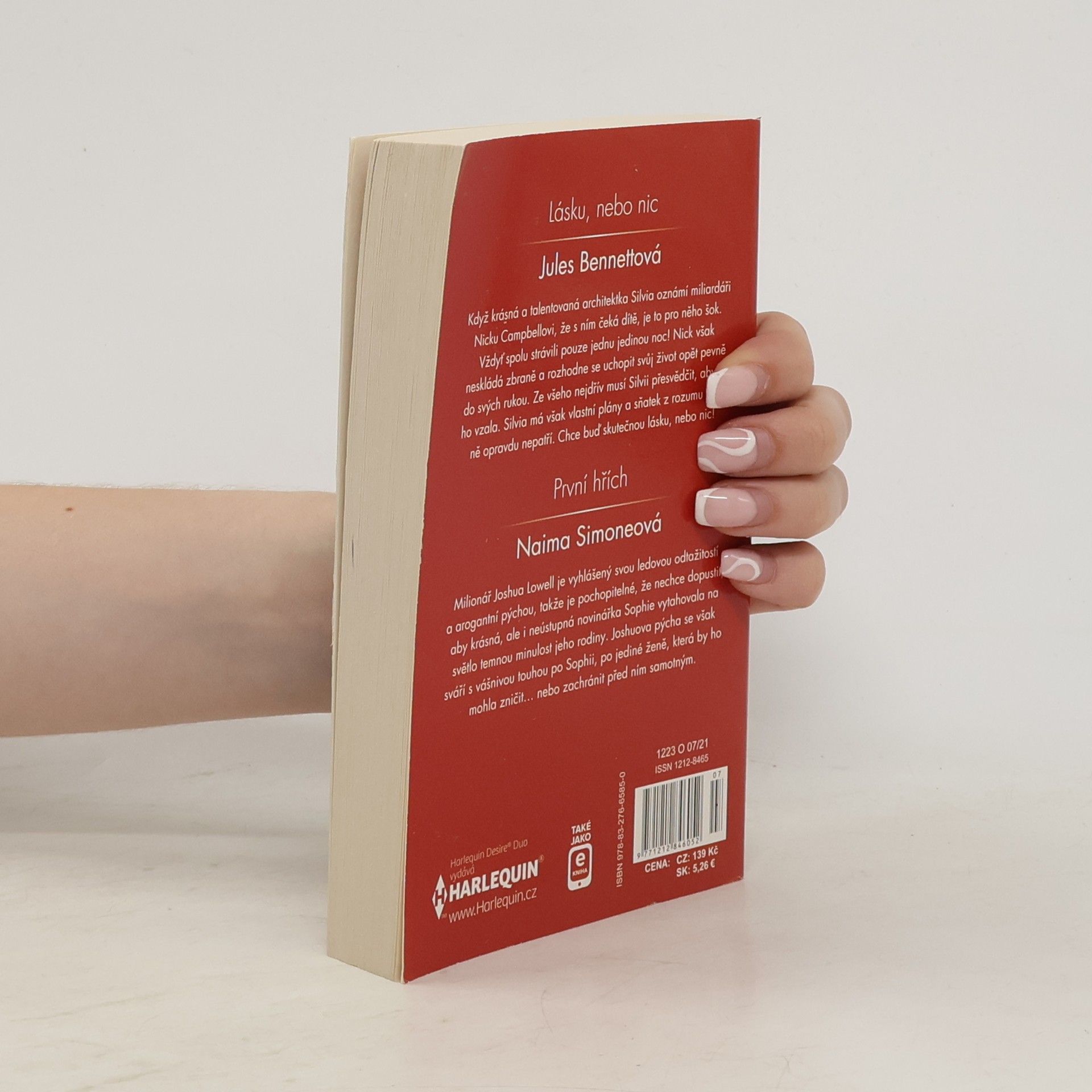 Lásku, nebo nic Když krásná a talentovaná architektka Silvia oznámí miliardáři Nicku Campbellovi, že s ním čeká dítě, je to pro něho šok. Vždyť spolu strávili pouze jednu jedinou noc! Nick však neskládá zbraně a rozhodne se uchopit svůj život opět pevně do svých rukou. Ze všeho nejdřív musí Silvii přesvědčit, aby si ho vzala. Silvia má však vlastní plány a sňatek z rozumu mezi ně opravdu nepatří. Chce buď skutečnou lásku, nebo nic! První hřích Milionář Joshua Lowell je vyhlášený svou ledovou odtažitostí a arogantní pýchou, takže je pochopitelné, že nechce dopustit, aby krásná, ale i neústupná novinářka Sophie vytahovala na světlo temnou minulost jeho rodiny. Joshuova pýcha se však sváří s vášnivou touhou po Sophii, po jediné ženě, která by ho mohla zničit… nebo zachránit před ním samotným.