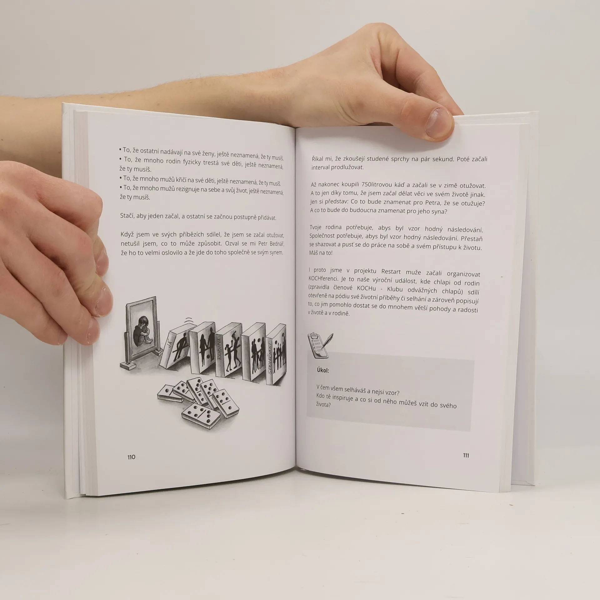 Kniha Restart muže Ti dá vhled do způsobu myšlení a chování, které Ti může změnit život. Mně to pomohlo dostat se z módu přežívání, kdy se mi vůbec nechtělo žít, do stavu, kdy jsem šťastný chlap se ženou a třemi dětmi. V této knize, společně s mým parťákem psychologem Milanem Studničkou, budeme sdílet chlapské desatero. To je platné pro každého chlapa, který chce mít v sobě i v rodině radost, klid a pohodu. Kniha je psána jednoduše a čtivě. Poskytne Ti vhled do myšlení chlapa, který je oporou hlavně sám sobě a z toho následně pramení vše v jeho životě.