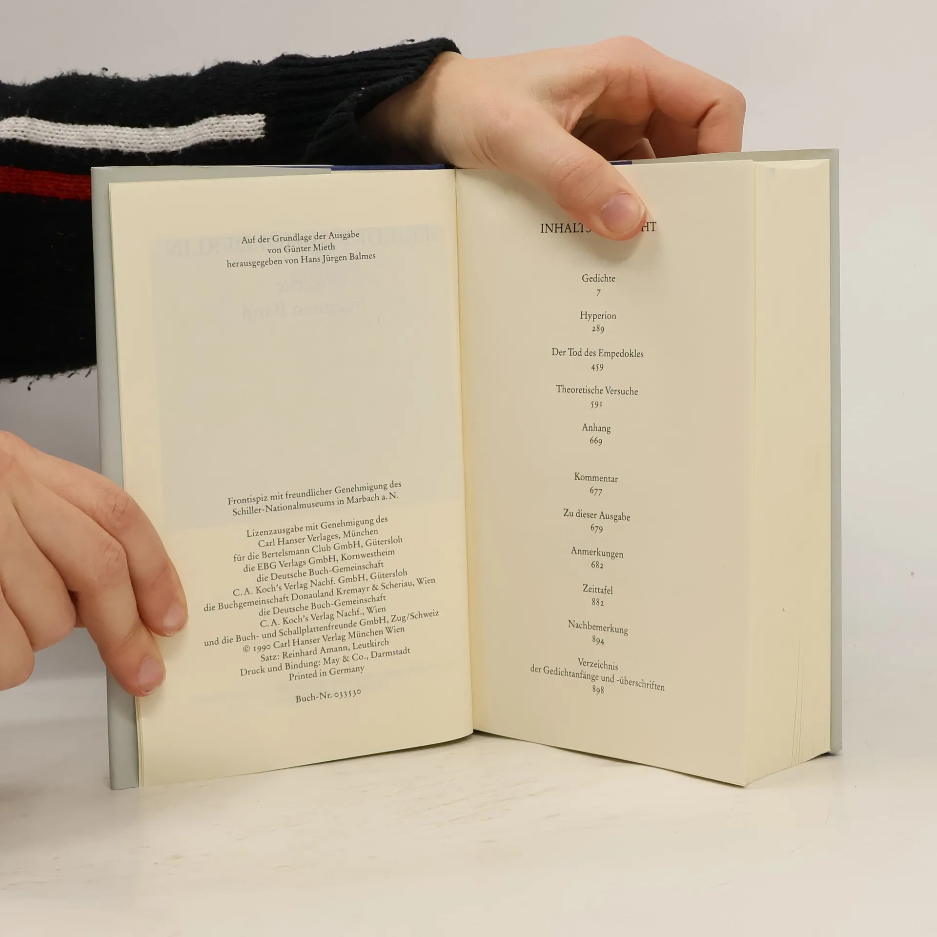 Diese Ausgabe gibt die verschiedenen Fassungen ausgewählter Gedichte, des Romans Hyperion und der Tragödie Der Tod des Empedokles wieder; in den Theoretischen Versuchen wird das Verhältnis zu den Jugendfreunden Hegel und Schelling anschaulich. Der Kommentar stellt Querverbindungen her und bietet wichtige Wort- und Sacherklärungen und eine Zeittafel.