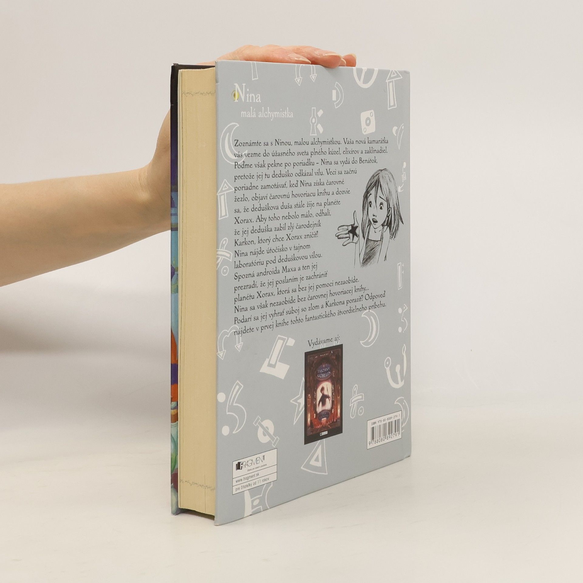 Zoznámte sa s Ninou, malou alchymistkou. Vaša nová kamarátka vás vezme do úžasného sveta plného kúziel, elixírov a zaklínadiel. Poďme však pekne po poriadku - Nina sa vydá do Benátok, pretože jej tu deduško odkázal vilu. Veci sa začnú poriadne zamotávať, keď Nina získa čarovné žezlo, objaví čarovnú hovoriacu knihu a dozvie sa, že deduškova duša stále žije na planéte Xorax. Aby toho nebolo málo, odhalí, že jej deduška zabil zlý čarodejník Karkon, ktorý chce Xorax zničiť! Nina nájde útočisko v tajnom laboratóriu pod deduškovou vilou. Spozná androida Maxa, ktorý jej prezradí, že jej poslaním je zachrániť planétu Xorax, ktorá sa bez jej pomoci nezaobíde. Nina sa však nezaobíde bez čarovnej hovoriacej knihy... Podarí sa jej vyhrať súboj so zlom a Karkona poraziť? Odpoveď nájdete v prvej knihe tohto fantastického štvordielneho príbehu.