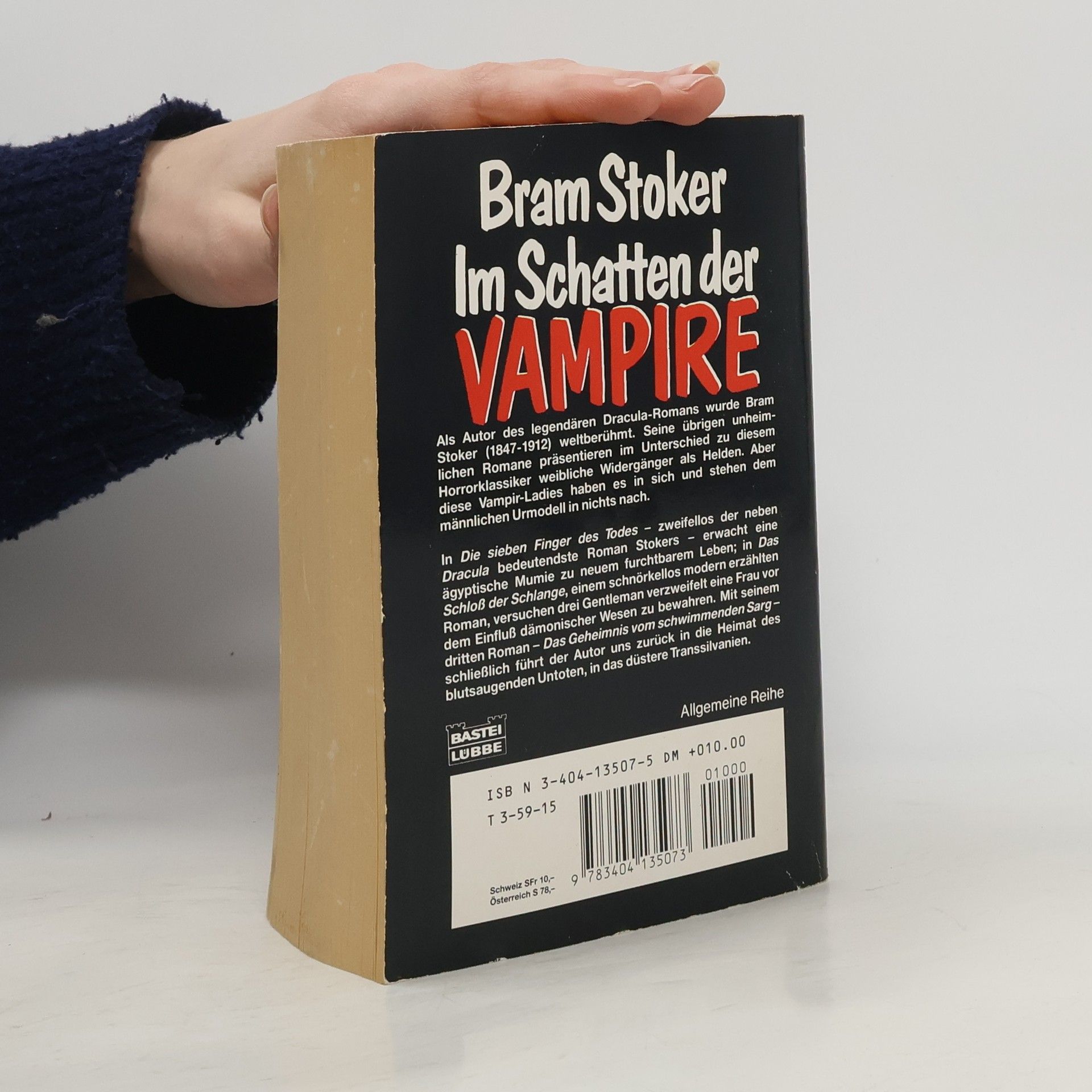 German edition of the 3 novels: - The Jewel of Seven Stars (1903) - The Lair of the White Worm (1911) - The Lady of the Shroud (1909) -------------- enthält die folgenden Romane: - Die sieben Finger des Todes (1903) - Das Schloß der Schlange (1911) - Das Geheimnis des schwimmenden Sarges (1909)