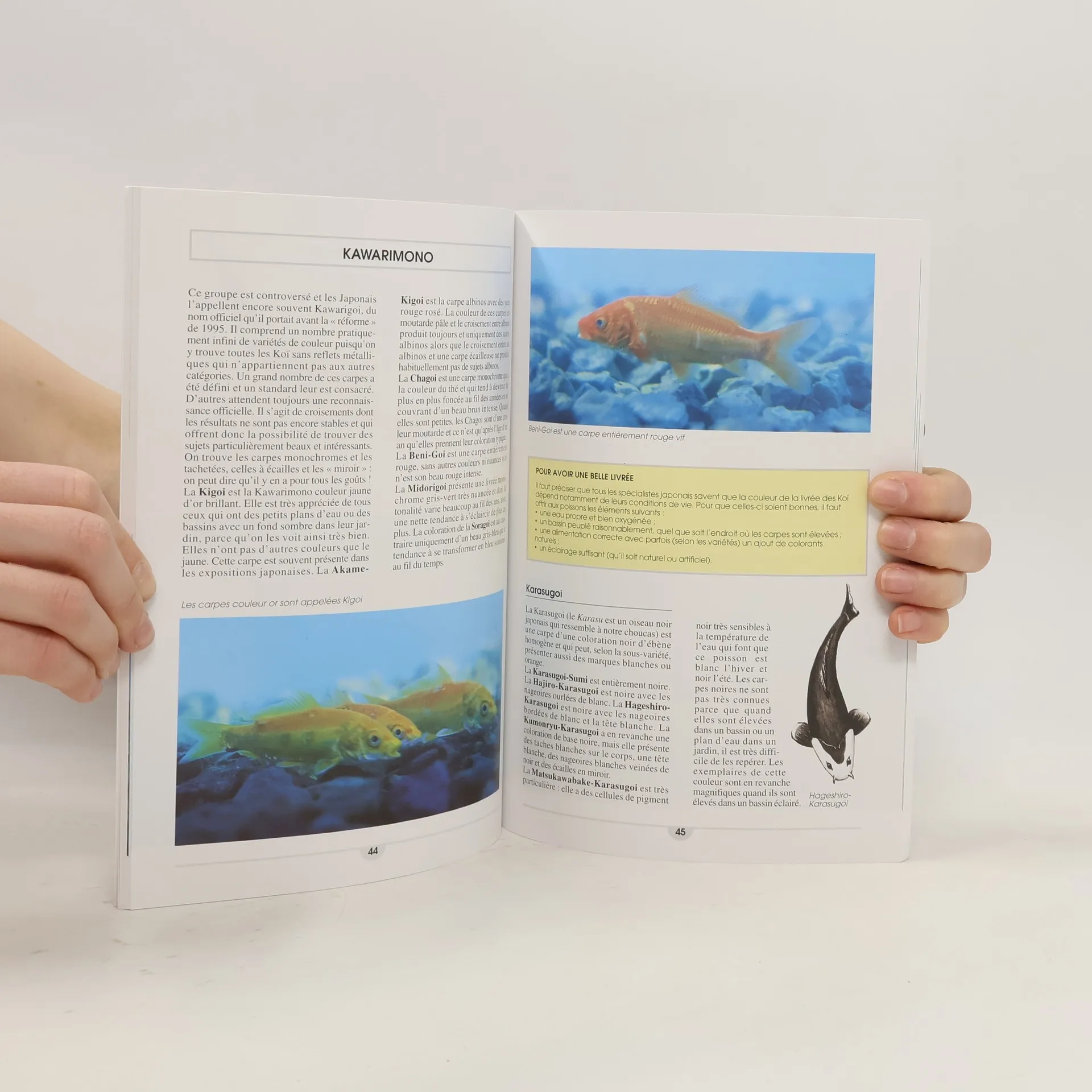 Superbe poisson exotique, la carpe Koï fait le bonheur des amateurs de bassins aquatiques. Il en existe plusieurs dizaines d'espèces, et les couleurs varient d'un sujet à l'autre. D'une grande vivacité mais aussi d'une grande taille, les carpes Koï sont d'un effet ornemental assuré.L'auteur, fort de son expérience, nous fait découvrir les origines et l'histoire des capres Koï. Comment choisir un sujet sain, le type d'aquarium ou de bassin le plus adapté, comment lui offrir une alimentation correcte et des conditions environnementales propices à la reproduction, comment identifier les symptômes des principales maladies, comment les soigner.Vous trouverez dans cet ouvrage illustré tout en couleurs de nombreux conseils pratiques et des suggestions astucieuses pour permettre à vos carpes Koï de vivre heureuses et plus longtemps.