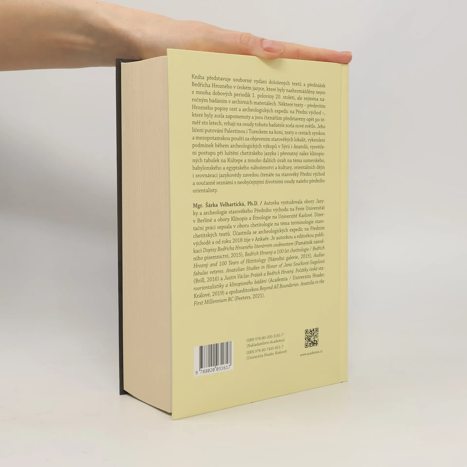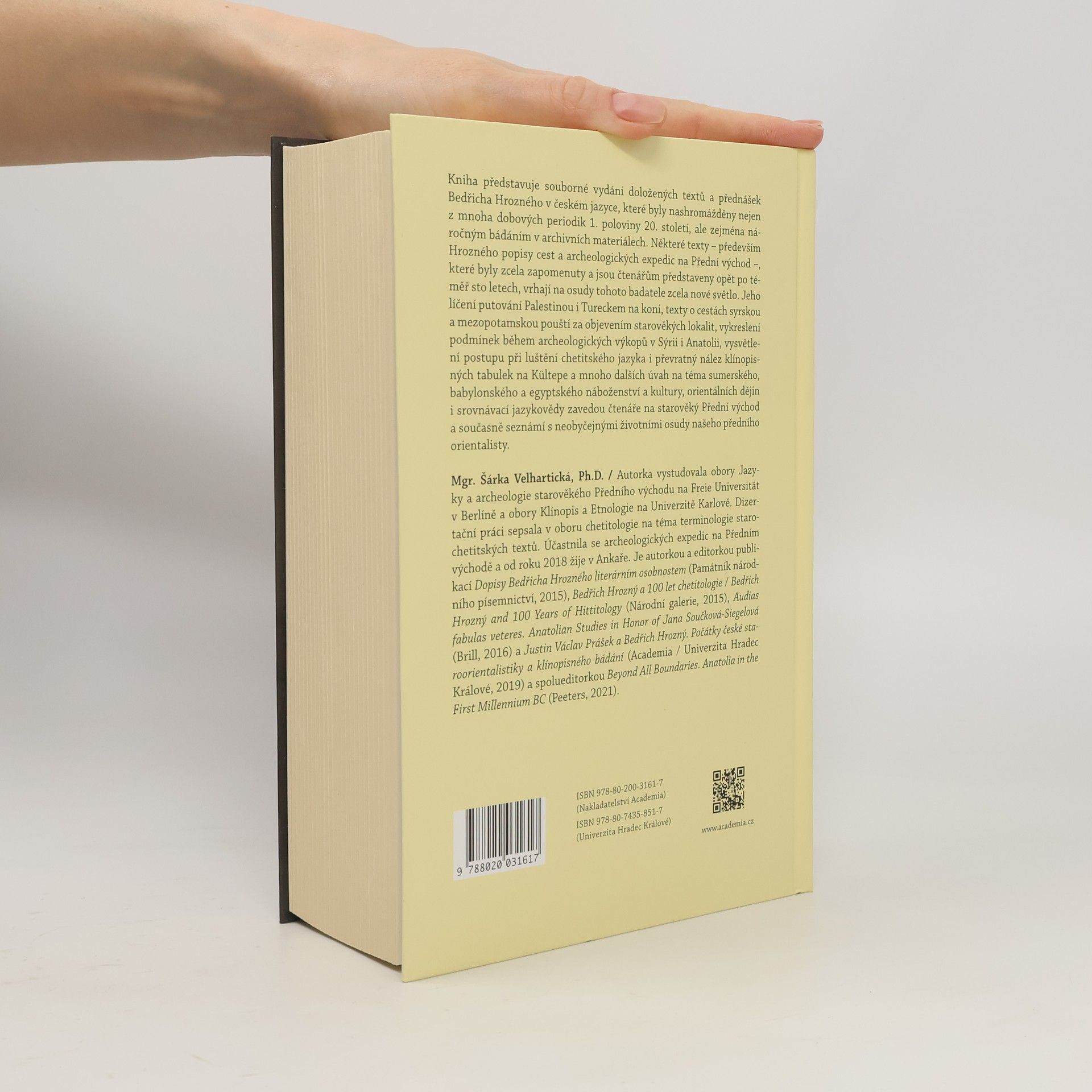 Archeologické expedice a lingvistické objevy předního českého orientalisty Kniha představuje souborné vydání doložených textů a přednášek Bedřicha Hrozného v českém jazyce, které byly nashromážděny nejen z mnoha dobových periodik 1. poloviny 20. století, ale zejména náročným bádáním v archivních materiálech. Některé texty – především Hrozného popisy cest a archeologických expedic na Přední východ –, které byly zcela zapomenuty a jsou čtenářům představeny opět po téměř sto letech, vrhají na osudy tohoto badatele zcela nové světlo. Jeho líčení putování Palestinou i Tureckem na koni, texty o cestách syrskou a mezopotamskou pouští za objevením starověkých lokalit, vykreslení podmínek během archeologických výkopů v Sýrii i Anatolii, vysvětlení postupu při luštění chetitského jazyka i převratný nález klínopisných tabulek na Kültepe a mnoho dalších úvah na téma sumerského, babylonského a egyptského náboženství a kultury, orientálních dějin i srovnávací jazykovědy zavedou čtenáře na starověký Přední východ a současně seznámí s neobyčejnými životními osudy našeho předního orientalisty.