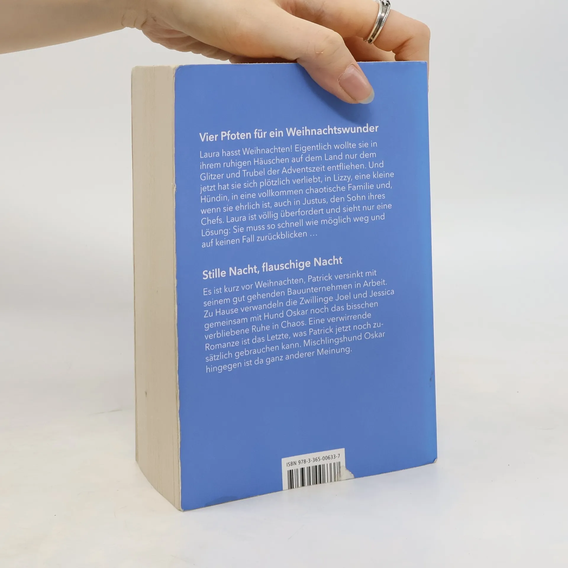 Vier Pfoten für ein WeihnachtswunderLaura hasst Weihnachten! Eigentlich wollte sie in ihrem ruhigen Häuschen auf dem Land nur dem Glitzer und Trubel der Adventszeit entfliehen. Und jetzt hat sie sich plötzlich verliebt, in Lizzy, eine kleine Hündin, in eine vollkommen chaotische Familie und, wenn sie ehrlich ist, auch in Justus, den Sohn ihres Chefs. Laura ist völlig überfordert und sieht nur eine Lösung: Sie muss so schnell wie möglich weg und auf keinen Fall zurückblicken …Stille Nacht, flauschige NachtEs ist kurz vor Weihnachten, Patrick versinkt mit seinem gut gehenden Bauunternehmen in Arbeit. Zu Hause verwandeln die Zwillinge Joel und Jessica gemeinsam mit Hund Oskar noch das Bisschen verbliebene Ruhe in Chaos. Eine verwirrende Romanze ist das Letzte, was Patrick jetzt noch zusätzlich gebrauchen kann. Mischlingshund Oskar hingegen ist da ganz anderer Meinung.