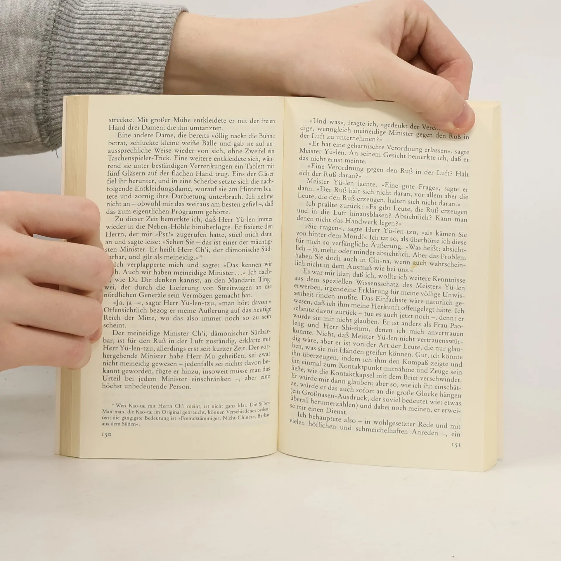 Ein Mandarin aus dem China des 10. Jahrhunderts versetzt sich mit Hilfe eines »Zeit-Reise-Kompasses« in die heutige Zeit. Er überspringt nicht nur tausend Jahre, sondern landet auch in einem völlig anderen Kulturkreis: in einer modernen Großstadt, deren Name in seinen Ohren wie Min-chen klingt und die in Ba Yan liegt. Verwirrt und wißbegierig stürzt sich Kao-tai in ein Abenteuer, von dem er nicht weiß, wie es ausgehen wird. In Briefen an seinen Freund im Reich der Mitte schildert er seine Erlebnisse und Eindrücke, erzählt vom seltsamen Leben der »Großnasen«, von ihren kulturellen und technischen Errungenschaften und versucht Beobachtungen und Vorgänge zu interpretieren, die ihm selbst zunächst unverständlich sind.