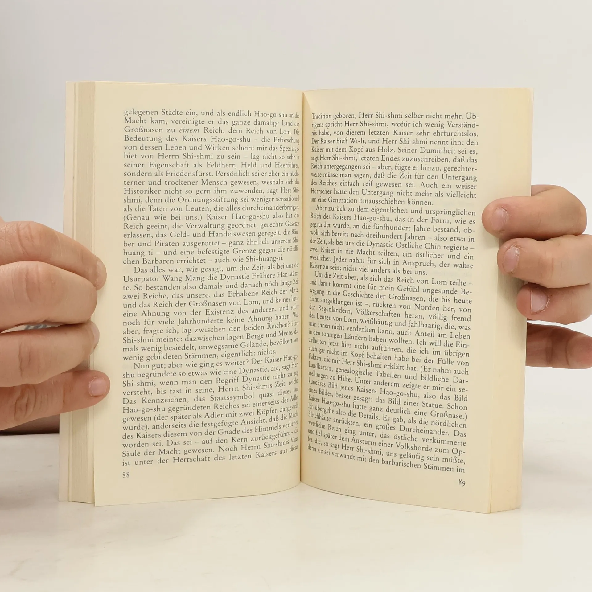 Ein Mandarin aus dem China des 10. Jahrhunderts versetzt sich mit Hilfe eines »Zeit-Reise-Kompasses« in die heutige Zeit. Er überspringt nicht nur tausend Jahre, sondern landet auch in einem völlig anderen Kulturkreis: in einer modernen Großstadt, deren Name in seinen Ohren wie Min-chen klingt und die in Ba Yan liegt. Verwirrt und wißbegierig stürzt sich Kao-tai in ein Abenteuer, von dem er nicht weiß, wie es ausgehen wird. In Briefen an seinen Freund im Reich der Mitte schildert er seine Erlebnisse und Eindrücke, erzählt vom seltsamen Leben der »Großnasen«, von ihren kulturellen und technischen Errungenschaften und versucht Beobachtungen und Vorgänge zu interpretieren, die ihm selbst zunächst unverständlich sind.