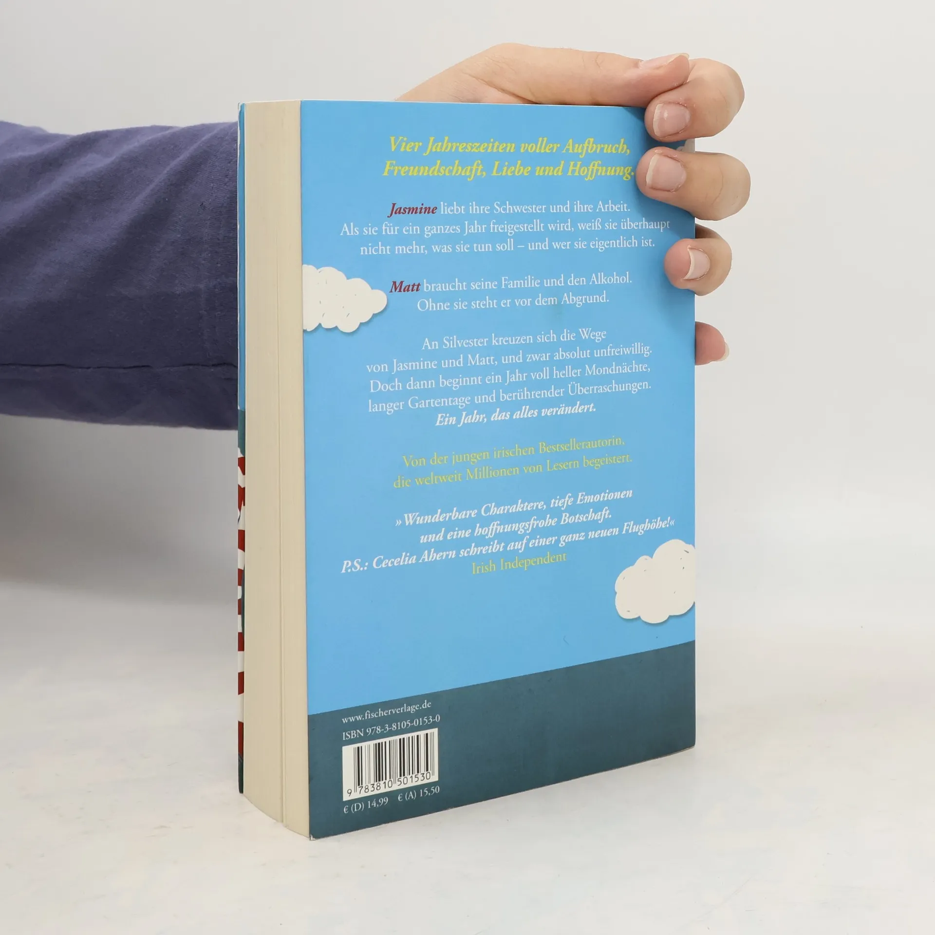 Vier Jahreszeiten voller Aufbruch, Freundschaft, Liebe und Hoffnung: der neue Roman der jungen irischen Bestsellerautorin, die weltweit Millionen von Lesern begeistert. Jasmine liebt ihre Schwester und ihre Arbeit. Als sie für ein ganzes Jahr freigestellt wird, weiß sie überhaupt nicht mehr, was sie tun soll – und wer sie eigentlich ist. Matt braucht seine Familie und den Alkohol. Ohne sie steht er vor dem Abgrund. Jasmine und Matt sind Nachbarn, doch sie haben noch nie miteinander gesprochen. Da Jasmine so viel freie Zeit zu Hause hat, beginnt sie, Matt zu beobachten. Sie macht sich ihre Gedanken über ihn und fängt in ihrem Kopf Gespräche mit ihm an. Nur in echt will sie mit diesem Kerl nichts zu tun haben – dafür hat sie ihre eigenen, guten Gründe. Doch dann beginnt ein Jahr voll heller Mondnächte, langer Gartentage und berührender Überraschungen – ein Jahr, das alles verändert. Eine Geschichte so humorvoll, originell und einfühlsam, wie nur Cecelia Ahern sie schreibt.