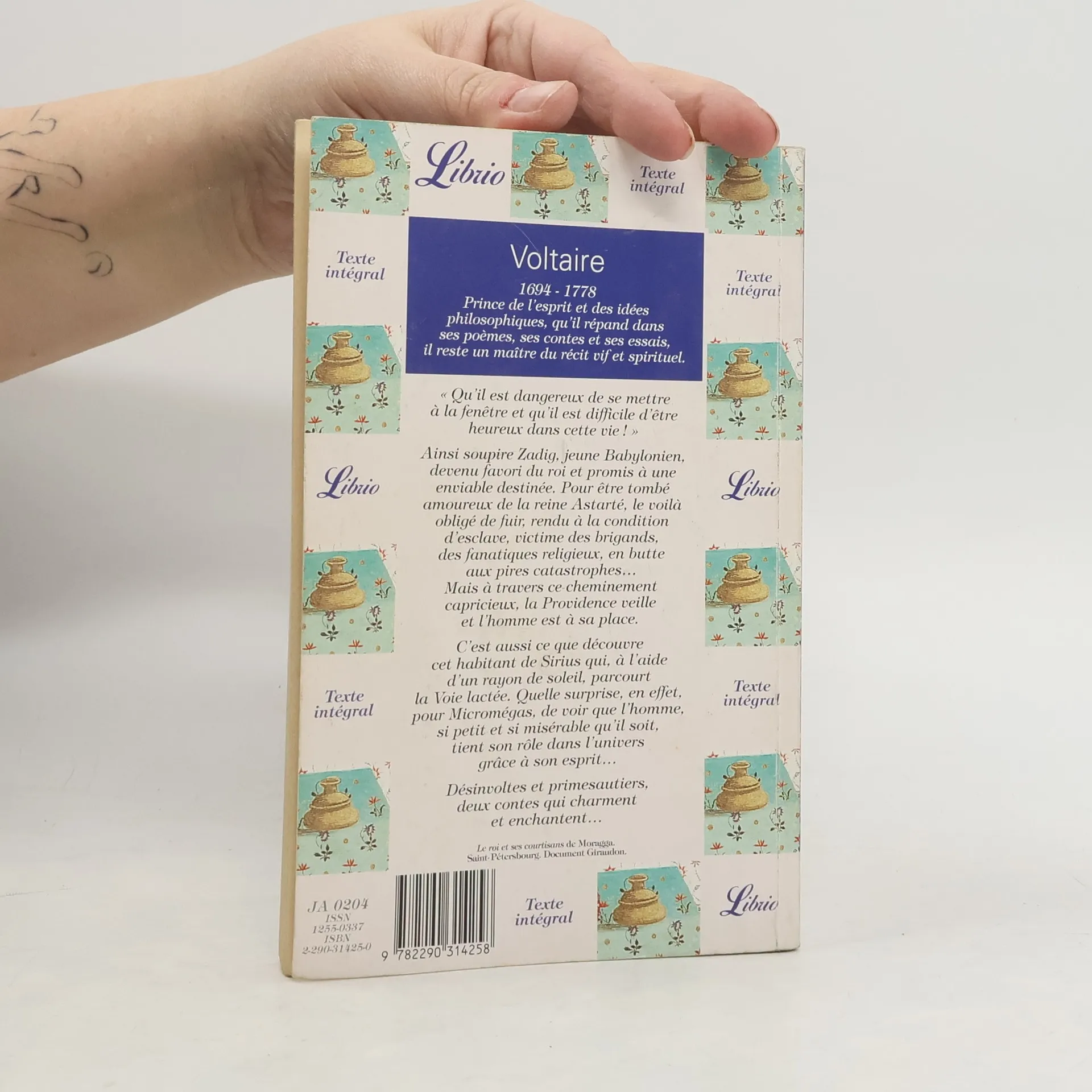 " Qu'il est dangereux de se mettre à la fenêtre et qu'il est difficile d'être heureux dans cette vie ! ". Ainsi soupire Zadig, jeune Babylonien, devenu favori du roi et promis à une enviable destinée. Pour être tombé amoureux de la reine Astarté, le voilà obligé de fuir, rendu à la condition d'esclave, victime des brigands, des fanatiques religieux, en butte aux pires catastrophes... Mais à travers ce cheminement capricieux, la Providence veille et l'homme est à sa place. C'est aussi ce que découvre cet habitant de Sirius qui, à l'aide d'un rayon de soleil, parcourt la Voie lactée. Quelle surprise, en effet, pour Micromégas, de voir que l'homme, si petit et si misérable qu'il soit, tient son rôle dans l'univers grâce à son esprit... Désinvoltes et primesautiers, deux contes qui charment et enchantent...