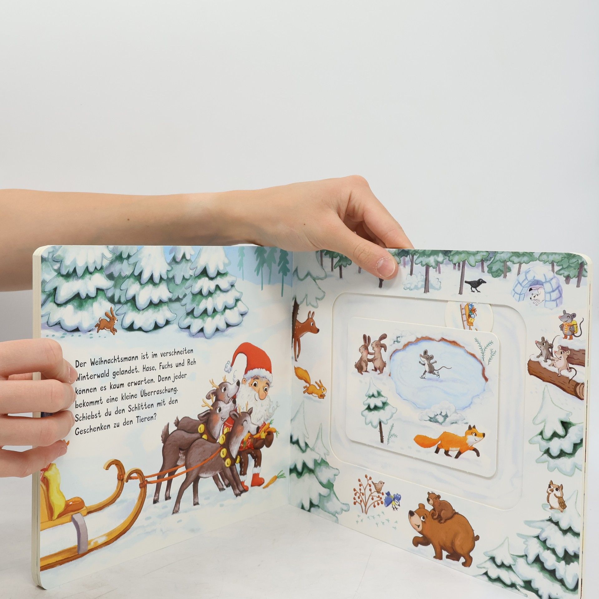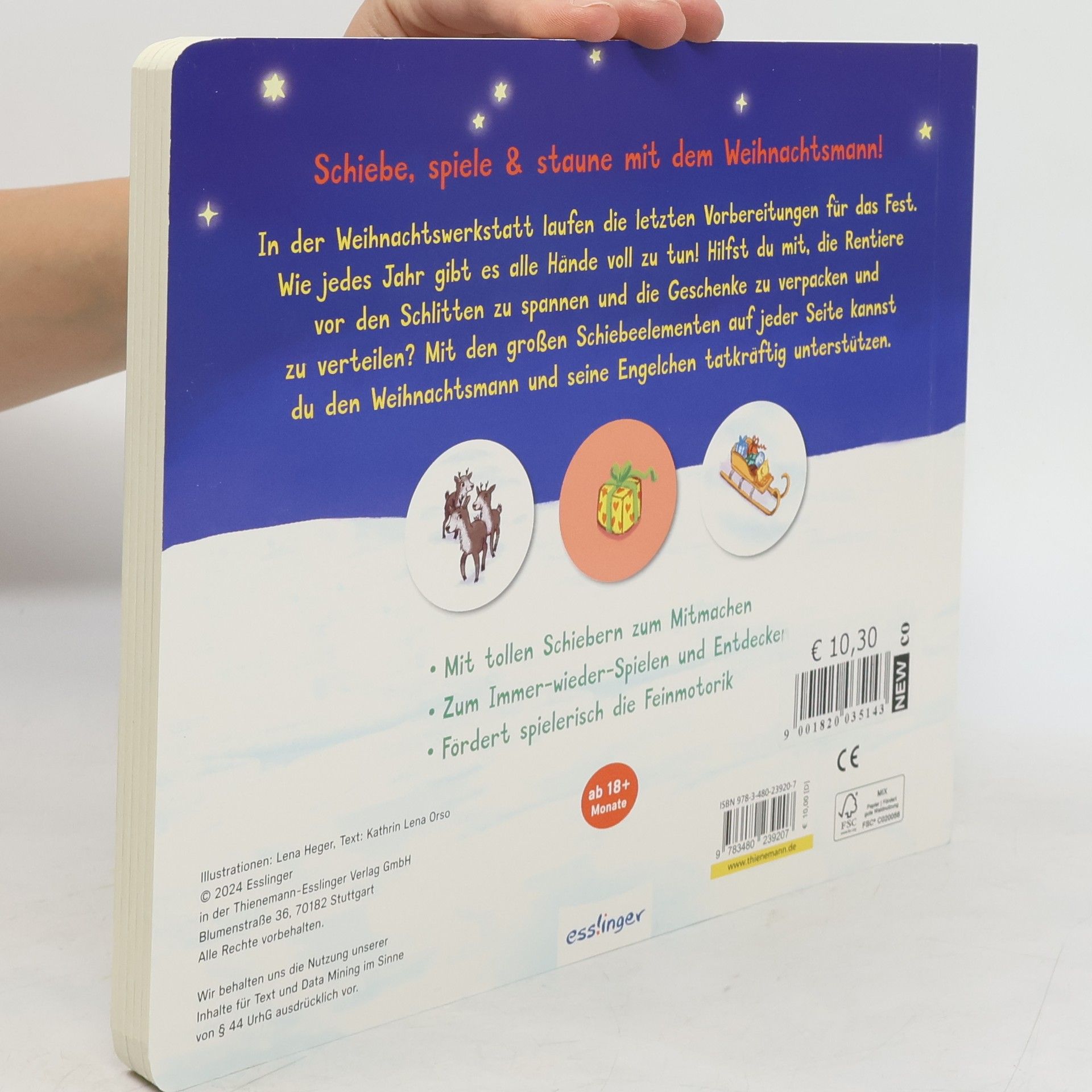 In diesem interaktiven Buch können Kinder ab 18 Monaten dem Weihnachtsmann bei den Vorbereitungen helfen. Mit großen Schiebe-Elementen unterstützen sie beim Geschenkeverstauen, Rentier-Spannen und Schlittenfahren. Spielerisch wird die Feinmotorik gefördert, und es gibt viel Spaß beim Entdecken!