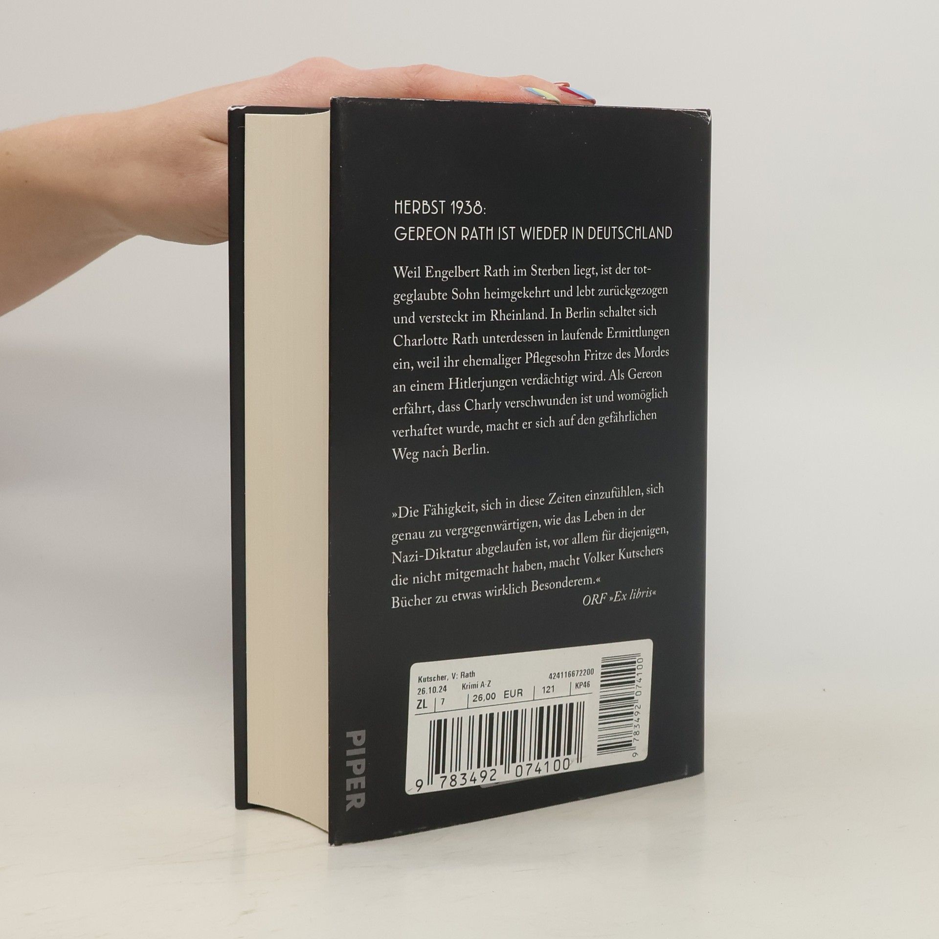 Familie Rath steht vor einem dramatischen Ende: Gereon kehrt aus den USA zurück und unterstützt Charly bei der Befreiung von Hannah Singer sowie der Verteidigung von Fritze. Angesichts des wachsenden Judenhasses und der Reichspogromnacht erkennen sie, dass ein Leben in Deutschland nicht mehr möglich ist. Volker Kutscher schließt seine Erfolgsserie spannend und tiefgründig ab.