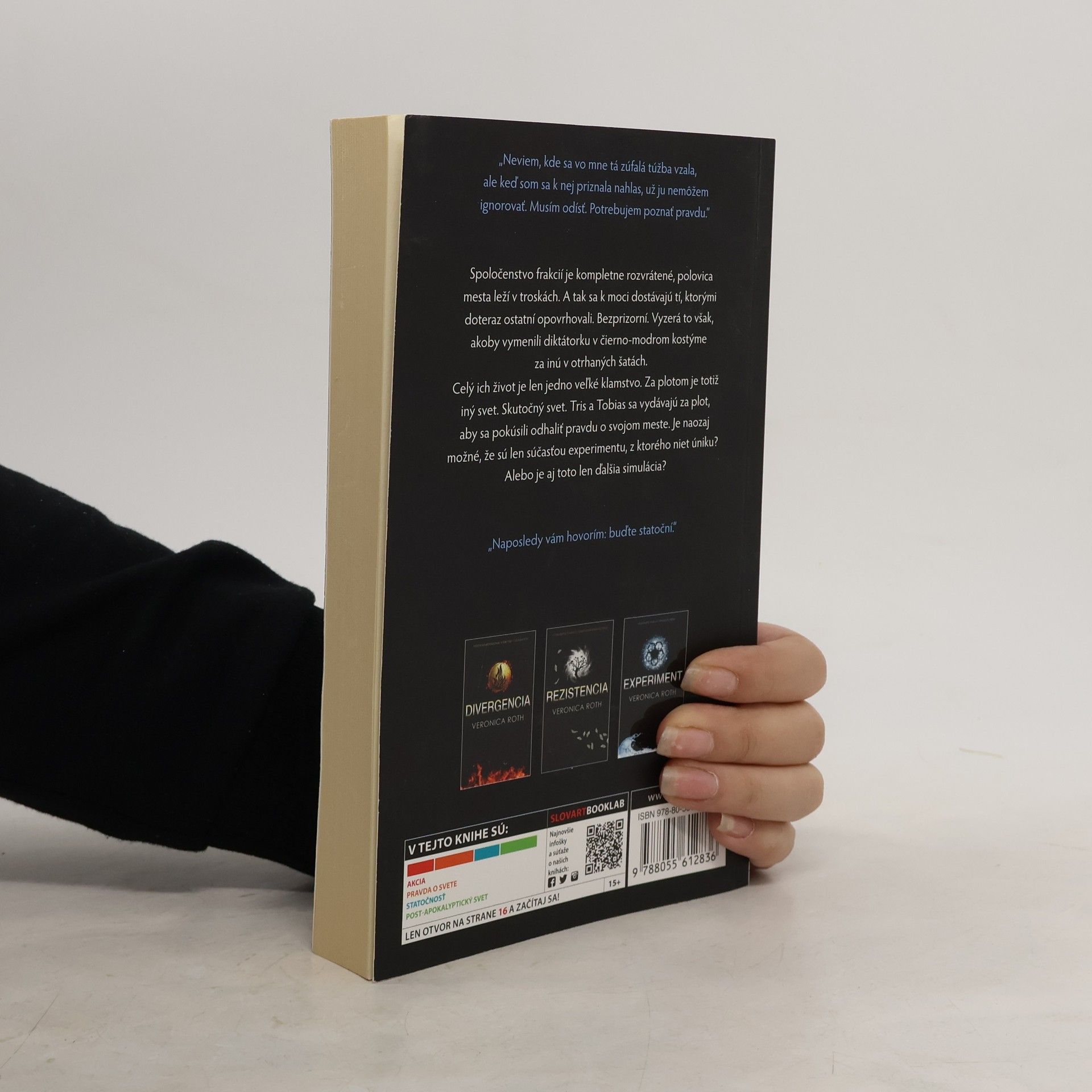 Dystopické sci-fi. Najočakávanejšia a najšokujúcejšia kniha roku 2013! Romány Divergencia a Rezistencia vtiahli čitateľov do mrazivo realistického postapokalyptického sveta. Teraz nastal čas zistiť, či to nebol všetko len EXPERIMENT! Tris a Tobias sú opäť spolu - ale za akú cenu. Systém frakcií je kompletne rozvrátený, polovica mesta leží v troskách. Spoločnosť však potrebuje vodcov, a tak sa k moci dostávajú tí, ktorými doteraz ostatní opovrhovali. Bezprizorní. Všetci však myslia iba na pomstu. A tak to vyzerá, akoby len vymenili diktátorku v čierno-modro kostýme za inú v otrhaných šatách. Mesto je v rozklade a jediná záchrana môže prísť zvonku. Tris a Tobias sa vydávajú za plot, aby sa pokúsili odhaliť pravdu o svojom meste. Je naozaj možné, že sú len súčasťou experimentu, z ktorého niet úniku? Alebo je aj toto len ďalšia simulácia?
