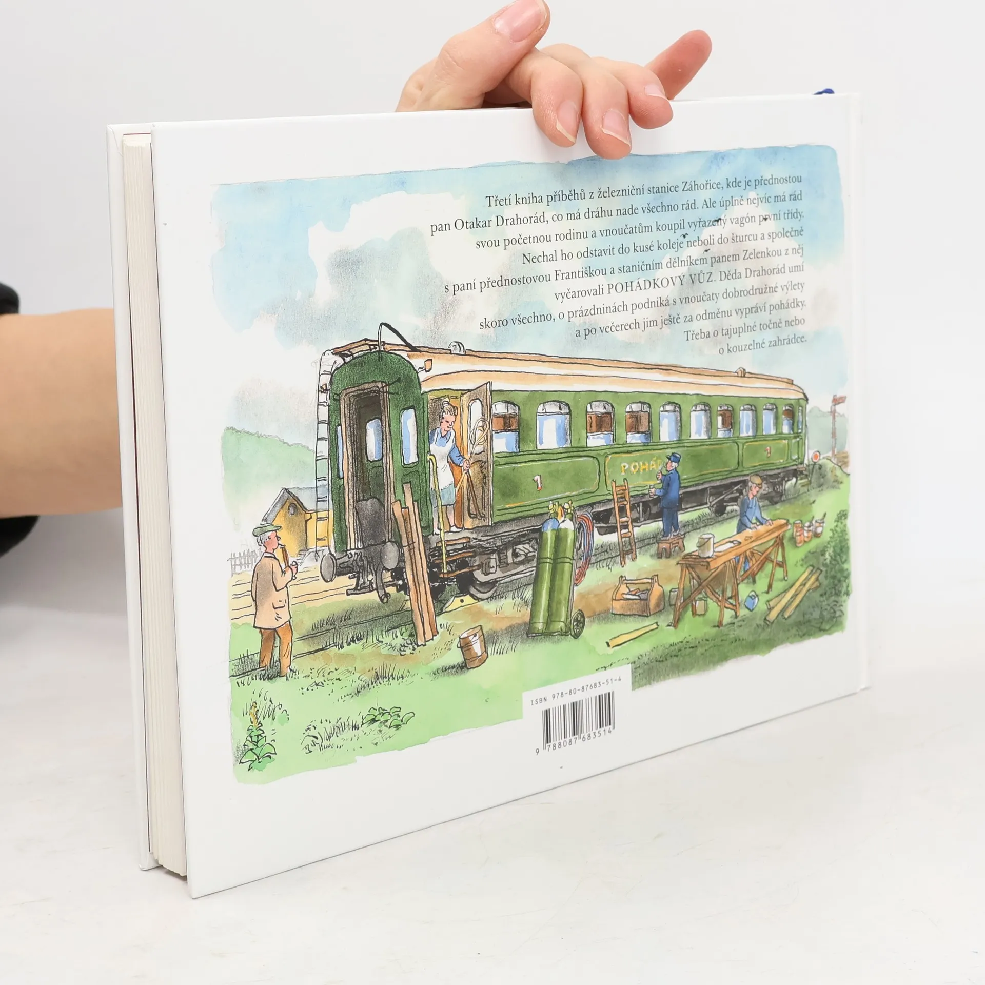 Třetí kniha příběhů z železniční stanice Záhořice, kde je přednostou pan Otakar Drahorád, co má dráhu nade všechno rád. Ale úplně nejvíc má rád svou početnou rodinu a vnoučatům koupil vyřazený vagón první třídy. Nechal ho odstavit do kusé koleje neboli do šturcu a společně s paní přednostovou Františkou a staničním dělníkem panem Zelenkou z něj vyčarovali POHÁDKOVÝ VŮZ. Děda Drahorád umí skoro všechno, o prázdninách podniká s vnoučaty dobrodružné výlety a po večerech jim ještě za odměnu vypráví pohádky. Třeba o tajuplné točně nebo o kouzelné zahrádce. I tuhle knihu provázejí půvabné ilustrace Jiřího Boudy.