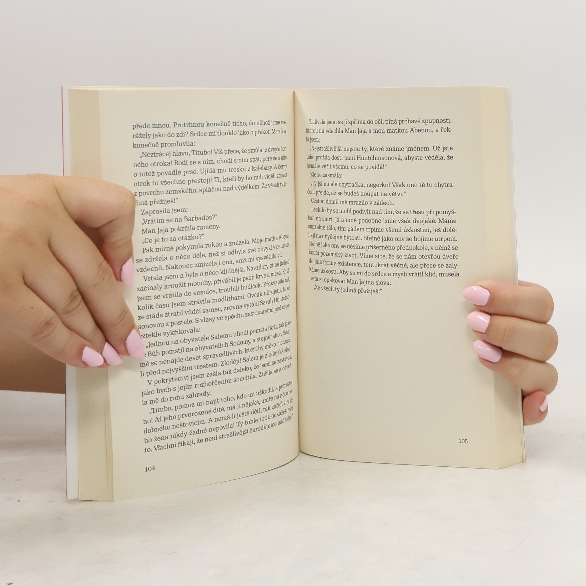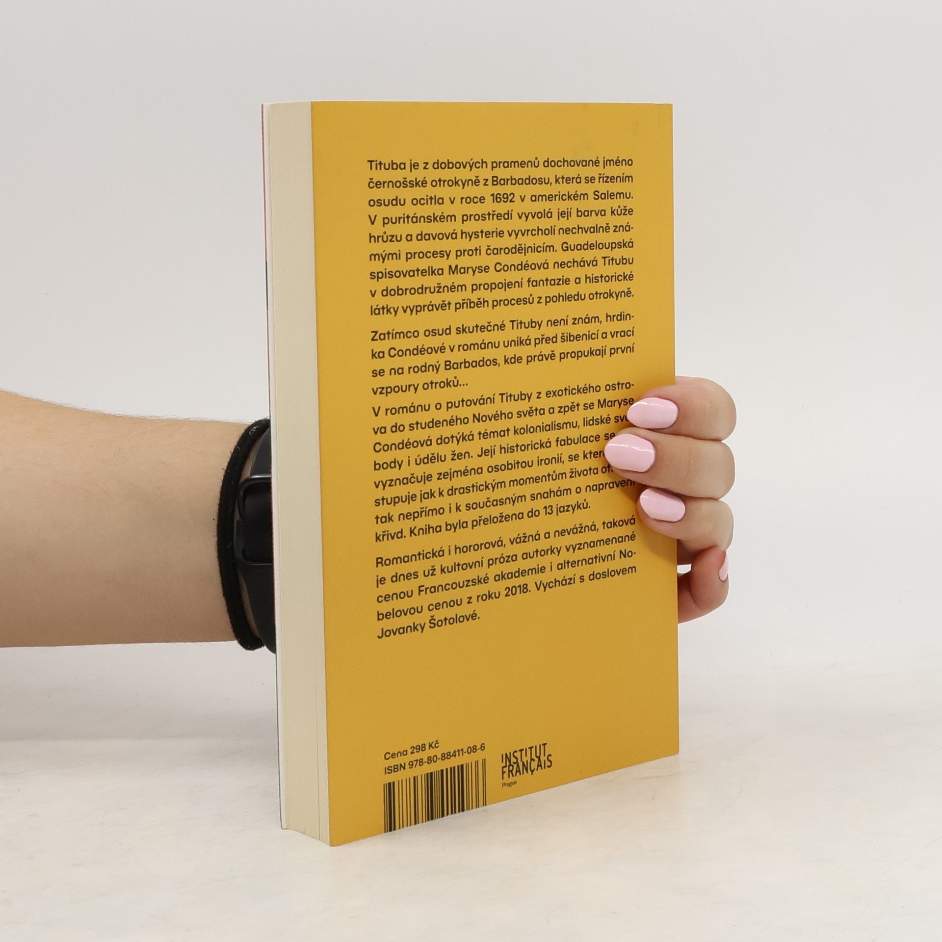 Tituba je z dobových pramenů dochované jméno černošské otrokyně z Barbadosu, která se řízením osudu ocitla v roce 1692 v americkém Salemu. V puritánském městě vyvolá její barva kůže hrůzu a davová hysterie vyvrcholí nechvalně známými procesy proti čarodějnicím. Guadeloupská spisovatelka Maryse Condéová nechává Titubu v dobrodružném propojení fantazie a historické látky vyprávět příběh procesů z pohledu otrokyně. V románu o putování Tituby z exotického ostrova do studeného Nového světa a zpět se Maryse Condéová dotýká témat kolonialismu, lidské svobody i údělu žen. Její historická fabulace se ale vyznačuje zejména osobitou ironií, se kterou přistupuje jak k drastickým momentům života otroků, tak nepřímo i k současným snahám o napravení křivd.