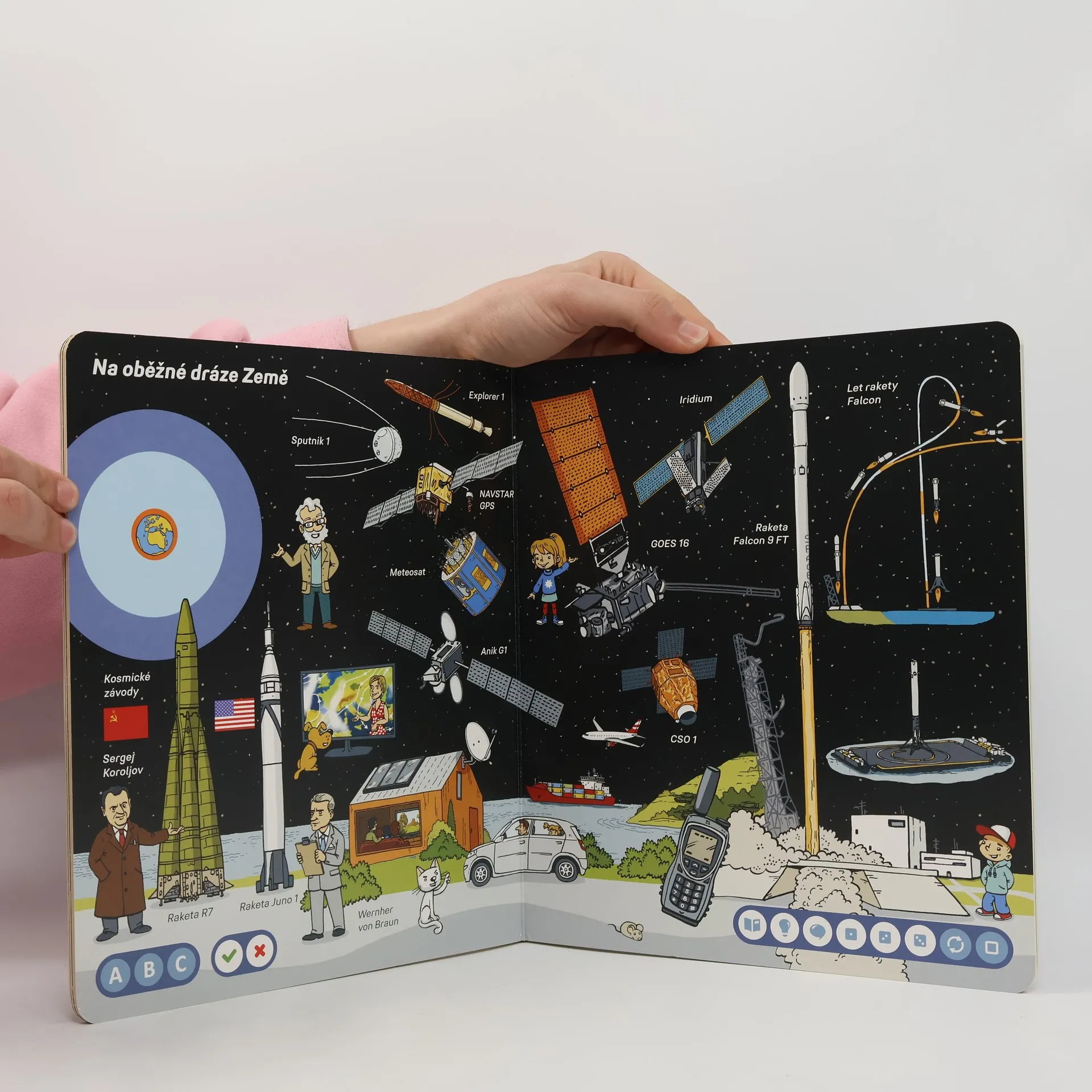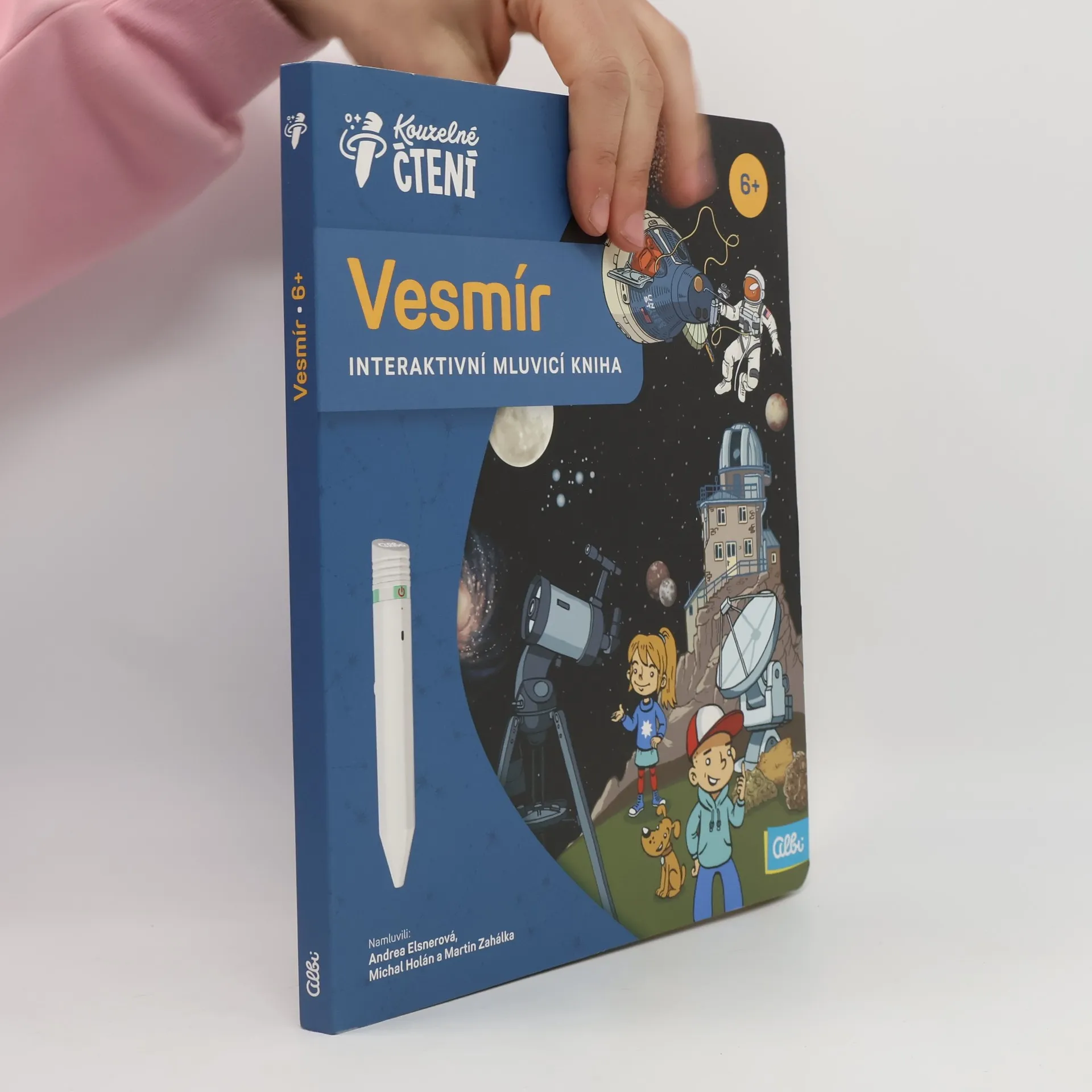 Interaktivní mluvící kniha Vesmír z edice Kouzelné čtení ukáže dětem od 6 let, jak dlouhou cestu ušel výzkum od prvotního pozorování hvězd až po lety na Měsíc a ještě dál.