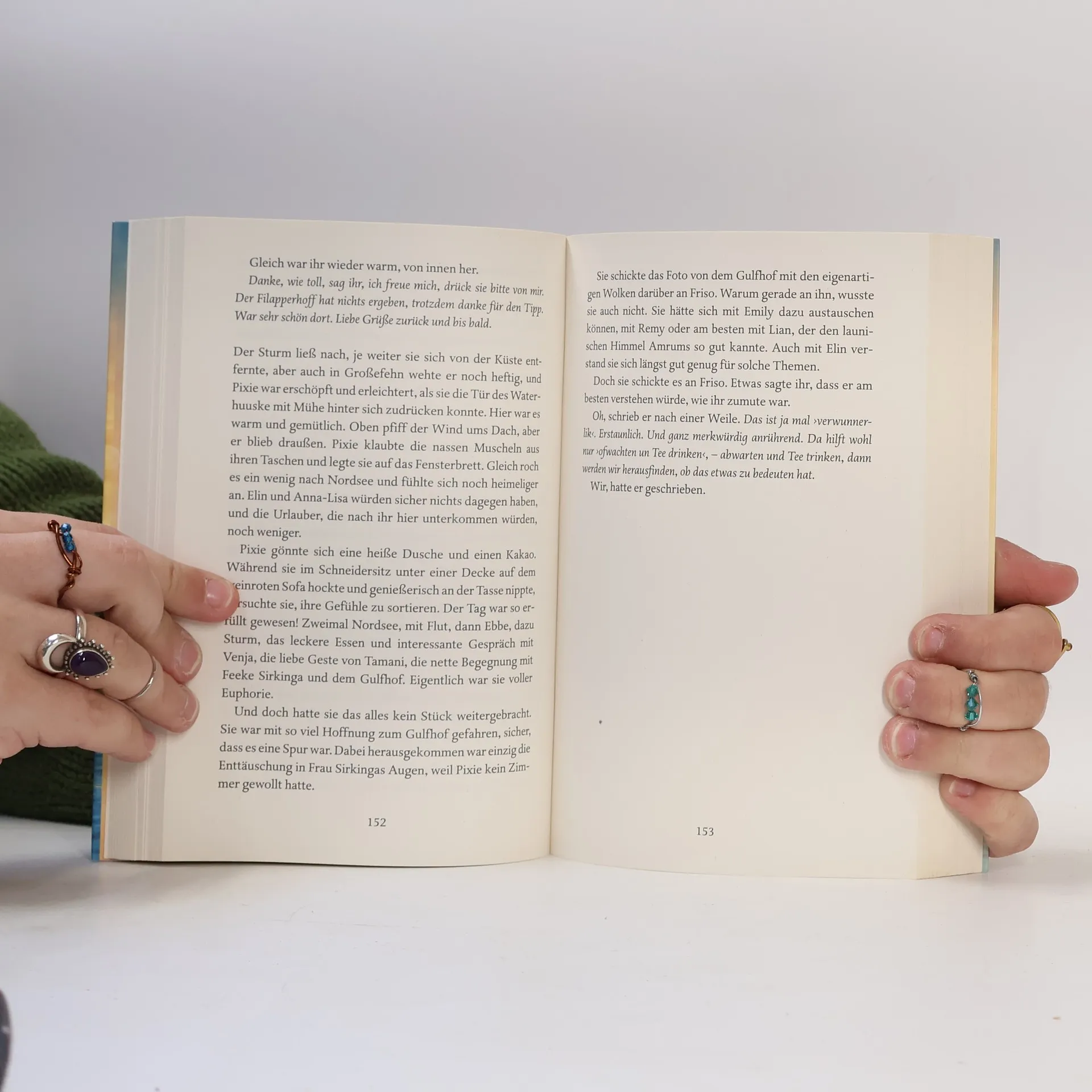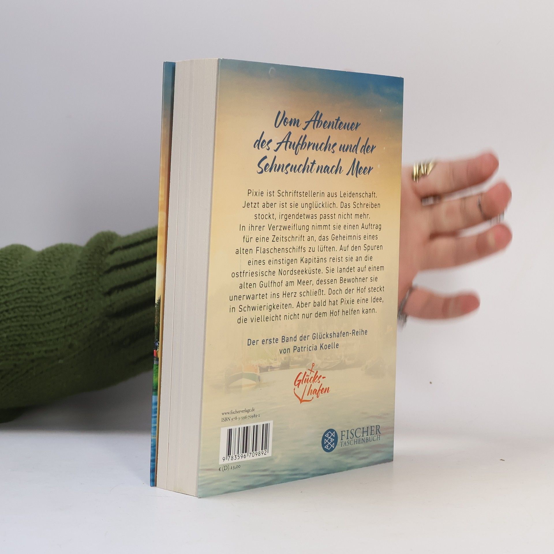 In "Glückshafen" von Patricia Koelle begleitet die Fantasy-Schriftstellerin Pixie ihre kreative Blockade mit einer Recherche über ein altes Flaschenschiff. Ihre Reise an die ostfriesische Nordseeküste führt sie zu Feeke und einem historischen Gulfhof, der in Gefahr ist. Pixie entdeckt ihre wahre Berufung und die Liebe zum Hof.