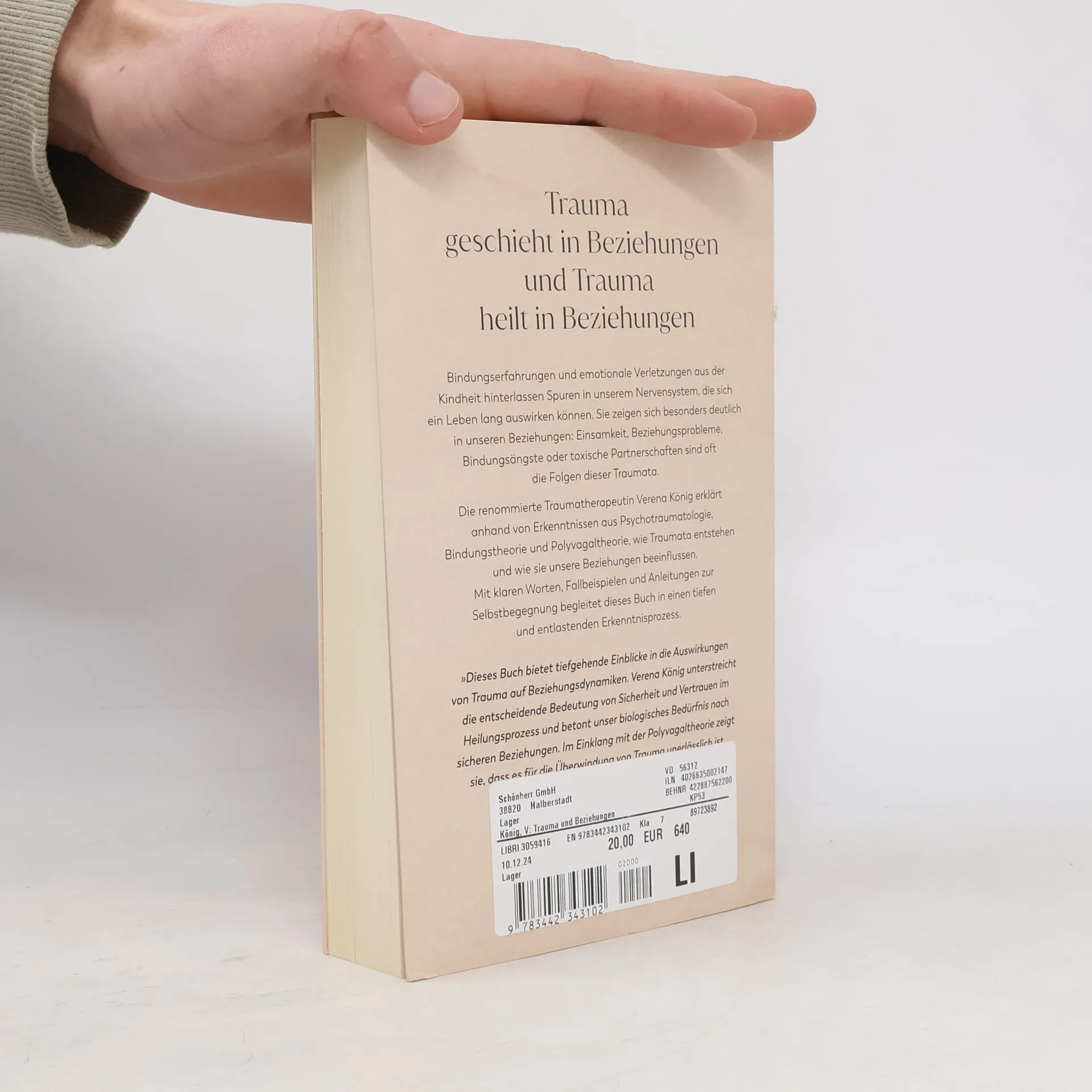 In diesem Buch erklärt die Traumatherapeutin Verena König, wie frühe Bindungserfahrungen und emotionale Verletzungen unsere Beziehungen prägen. Sie zeigt auf, wie Traumata entstehen und wie wir sie erkennen können, um erfüllende Beziehungen zu gestalten. Selbstreflexion und Mitgefühl sind Schlüssel zur Heilung.