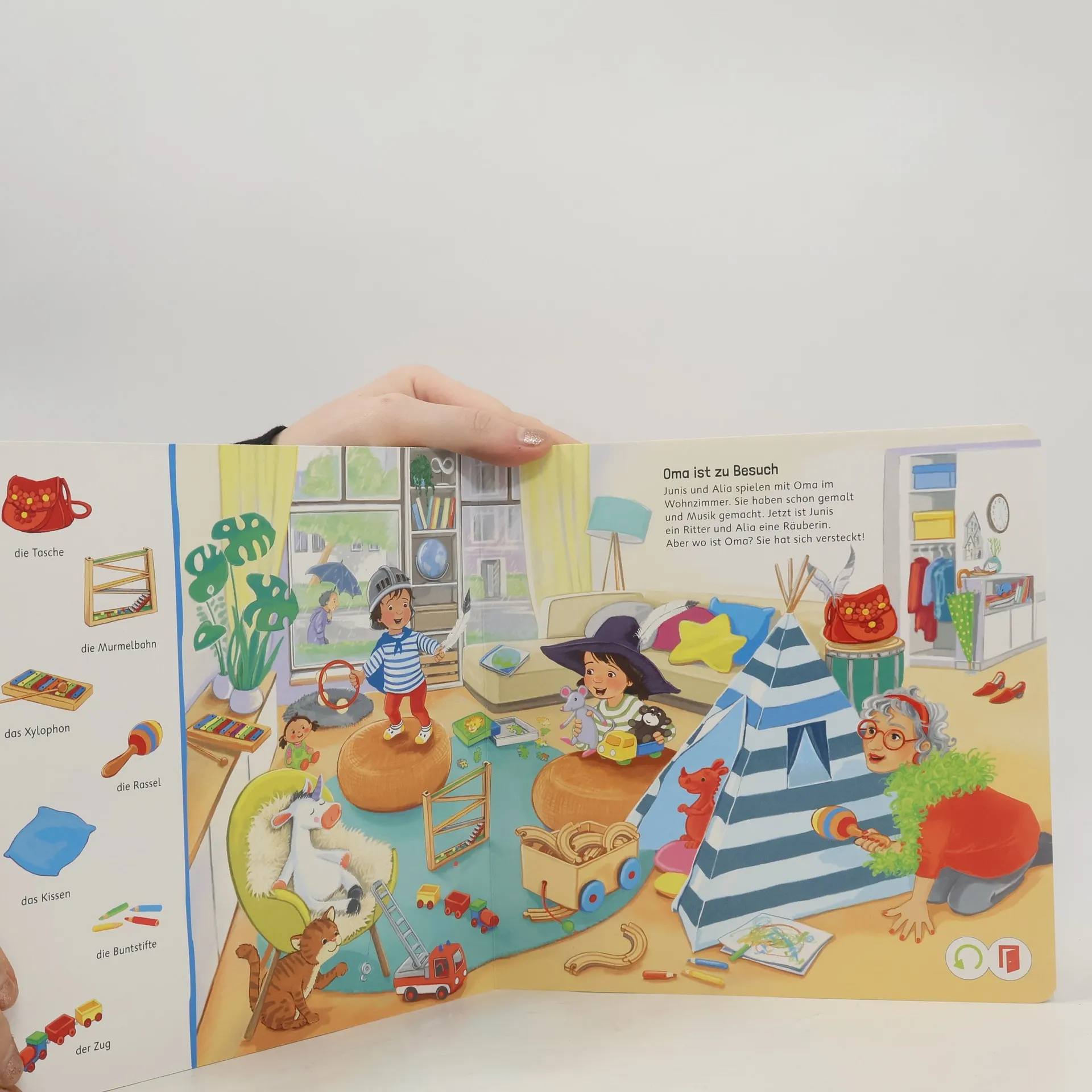 In diesem interaktiven Bilderbuch begleiten Kinder Junis und seine Familie durch einen abenteuerlichen Tag. Mit authentischen Geräuschen, Erzähltexten, Reimen und Liedern wird das Entdecken lebendig. Spannende Suchbilder fördern das genaue Hinsehen und Lernen für kleine Entdecker ab 2 Jahren.
