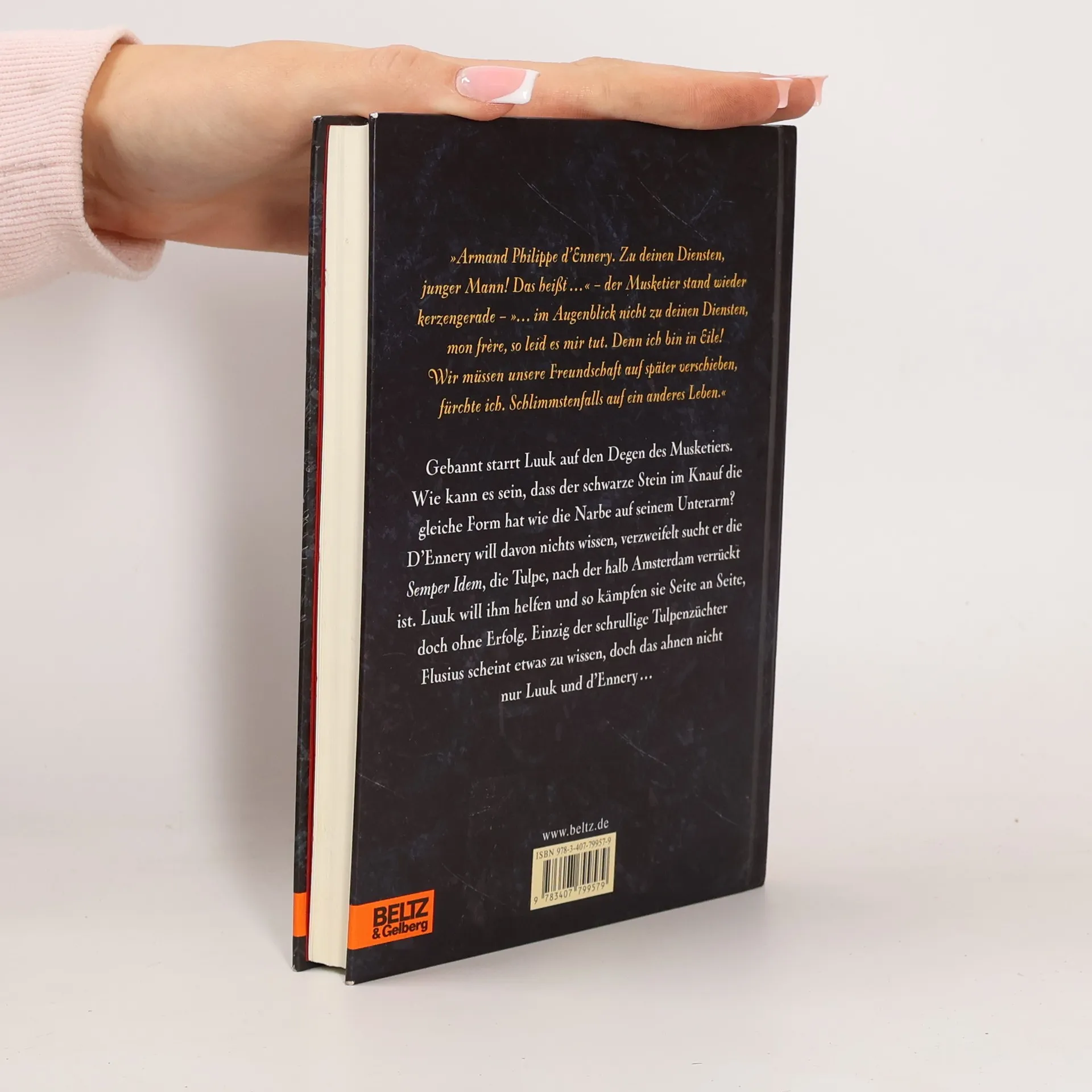 Wie gebannt starrt der zwölfjährige Luuk auf den Stein im Degen des Musketiers. Auf seltsame Weise gleicht der in den Degen eingelassene Karfunkel der Narbe, die er auf seinem Unterarm trägt. Doch D'Ennery plagen andere Sorgen: Er soll die Semper Idem holen, die edle dreifarbige Tulpe, die kaum ein Mensch jemals zu Gesicht bekam. Der Musketier findet zwar die kostbare Blume, doch fast ebenso schnell verliert er sie wieder. In Amsterdam will er sich nun holen, was ihm zusteht, doch nun sind bereits andere auf die edle Tulpe aufmerksam geworden und es kommt zu einem nächtlichen Kampf im Garten des Tulpenzüchters Flusius. Luuk versucht dem Musketier zu helfen, doch ehe er sich versieht, hat d’Ennery schon wieder etwas Wichtiges verloren und Luuk ist in ein turbulentes Abenteuer verstrickt, bei dem er den Karfunkel das erste Mal berühren darf.