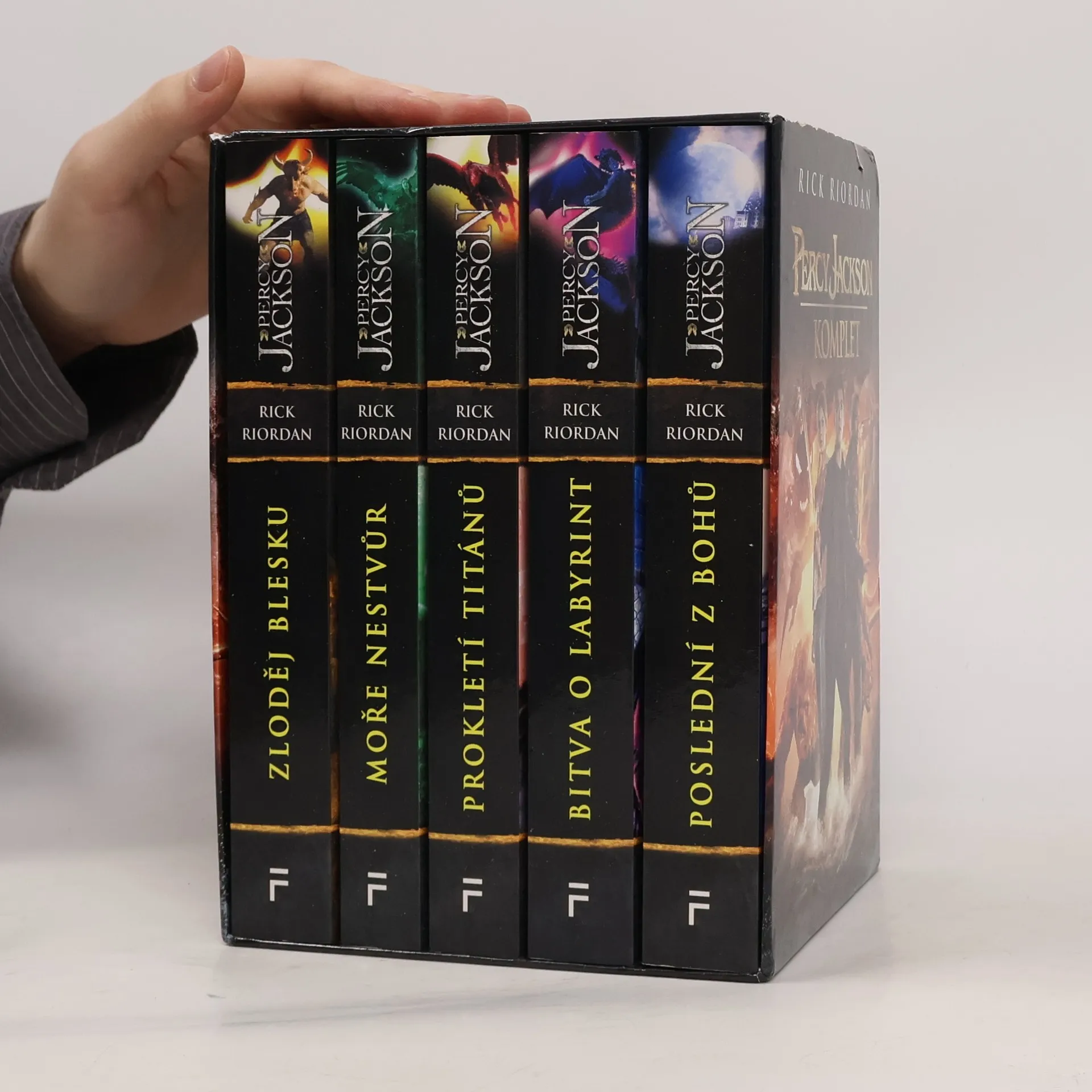 Kompletní vydání světového fantasy bestselleru v luxusním dárkovém boxu. Mytologické bytosti ožívají... Krvelačné nestvůry se bouří... Bohové z Olympu kladou úkoly... Jmenuji se Percy Jackson. Do teď jsem si myslel, že jsem obyčejný kluk, kterého čeká vyhazov ze školy. Zjistil jsem ale, že můj otec je bůh z Olympu… Kompletní vydání světového fantasy bestselleru v luxusním dárkovém boxu.