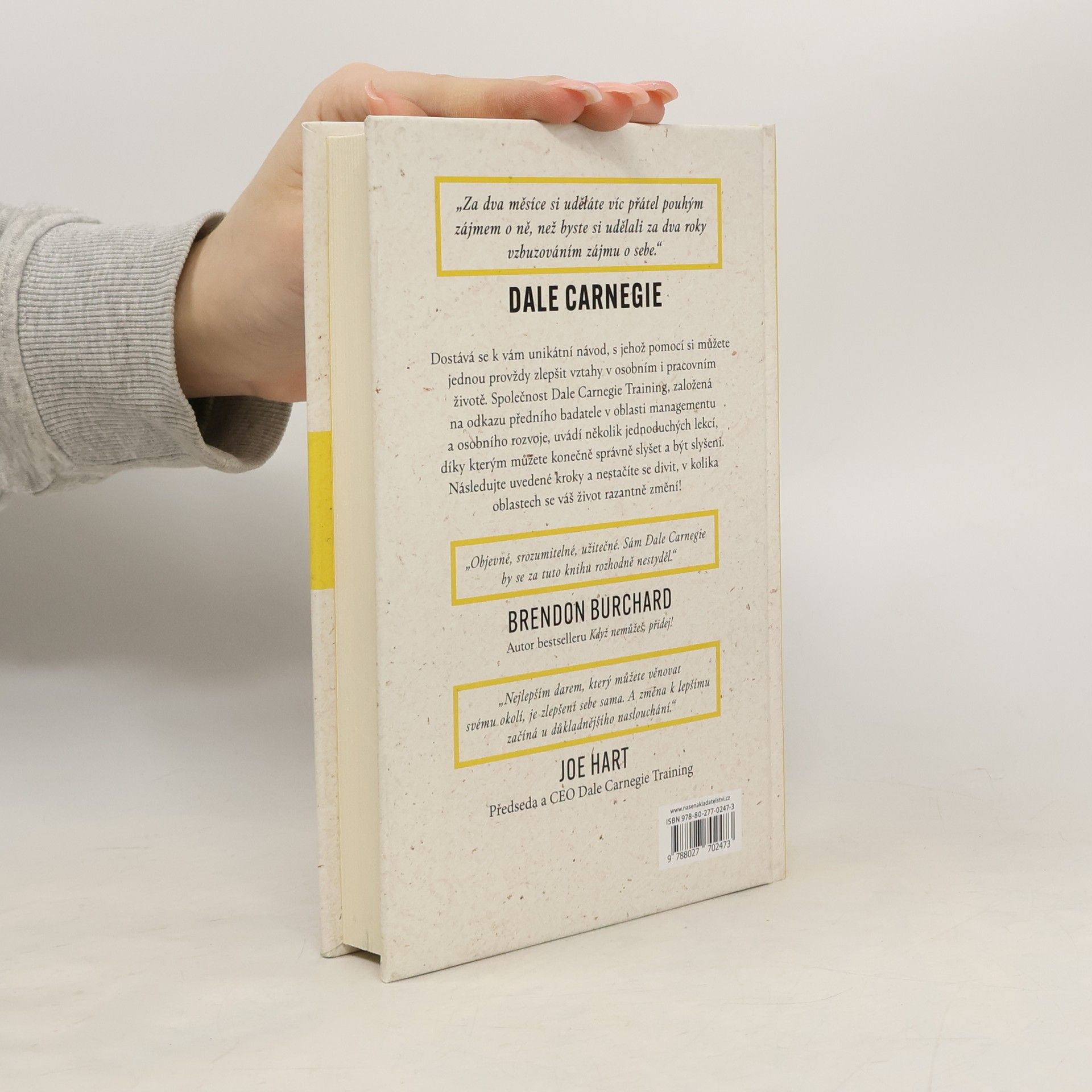Proč máme takové problémy se vzájemným porozuměním, ať už mluvíme s kolegy, přáteli nebo rodinou? Nebylo by lepší, kdyby vás ostatní konečně začali poslouchat a skutečně chápat? Dale Carnegie (autor věčného bestselleru Jak získávat přátele a působit na lidi a mnoha dalších) věřil, že spousta lidí zanechává špatný první dojem pouze proto, že nedokáže druhému efektivně naslouchat. Díky této publikaci se za použití názorných příkladů, jednoduchých technik a praktických cvičení rychle stanete lepším posluchačem – a brzy zjistíte, že i vy sami jste často lépe vyslechnuti a pochopeni. Učení Dalea Carnegieho a jeho následovníků vás snadnou, pochopitelnou cestou provede základy komunikace a mezilidských vztahů a stane se tak novou nepostradatelnou součástí vaší knihovny.