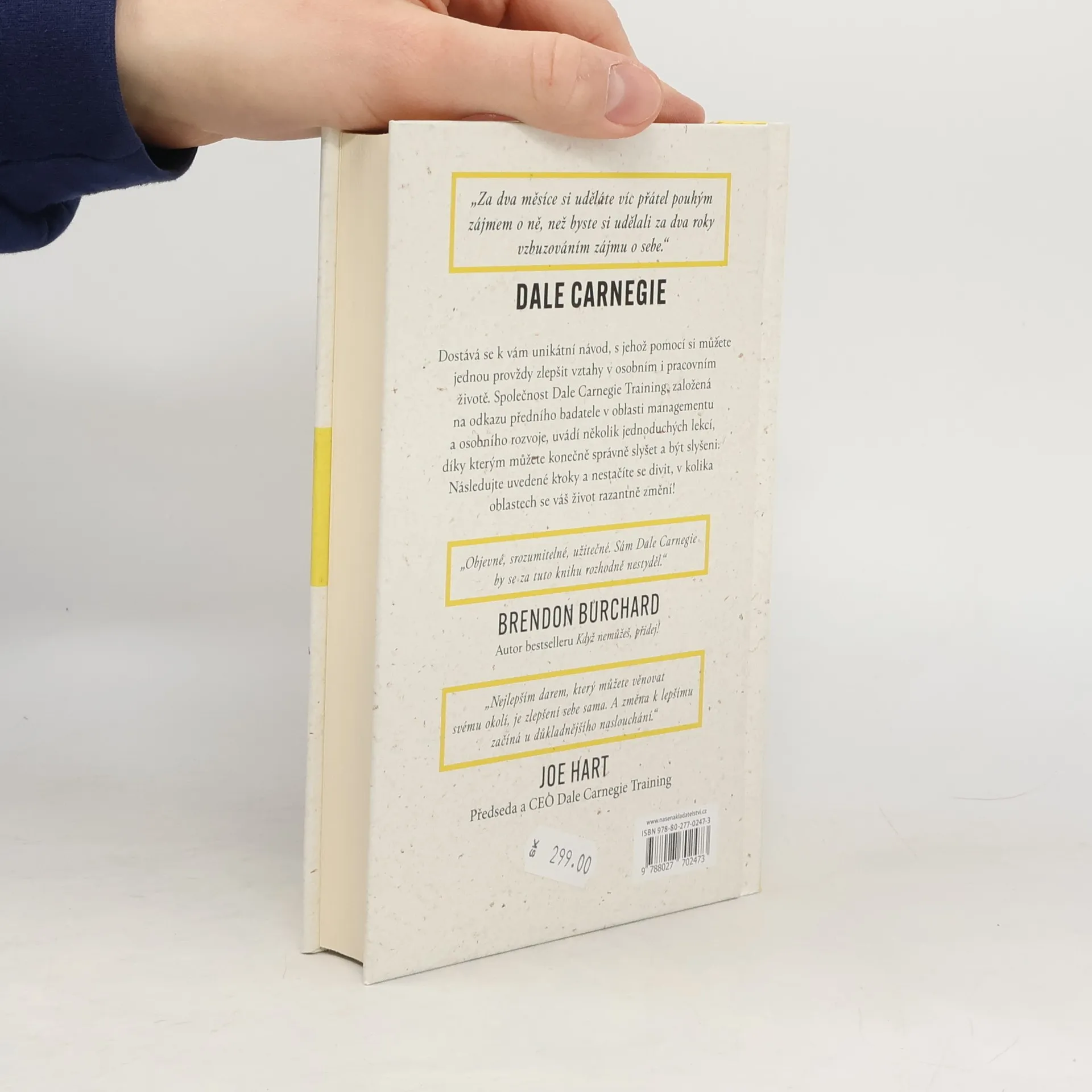 Proč máme takové problémy se vzájemným porozuměním, ať už mluvíme s kolegy, přáteli nebo rodinou? Nebylo by lepší, kdyby vás ostatní konečně začali poslouchat a skutečně chápat? Dale Carnegie (autor věčného bestselleru Jak získávat přátele a působit na lidi a mnoha dalších) věřil, že spousta lidí zanechává špatný první dojem pouze proto, že nedokáže druhému efektivně naslouchat. Díky této publikaci se za použití názorných příkladů, jednoduchých technik a praktických cvičení rychle stanete lepším posluchačem – a brzy zjistíte, že i vy sami jste často lépe vyslechnuti a pochopeni. Učení Dalea Carnegieho a jeho následovníků vás snadnou, pochopitelnou cestou provede základy komunikace a mezilidských vztahů a stane se tak novou nepostradatelnou součástí vaší knihovny.