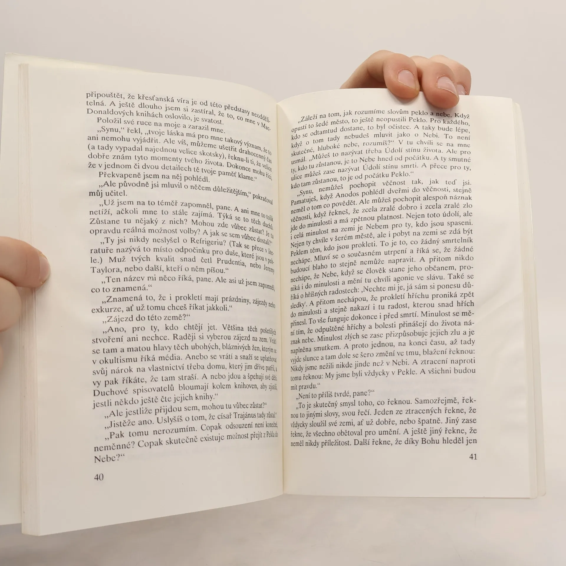 Myšlenka spojit nebe a peklo dohromady je asi věčně v nás, založená na víře, že skutečnost nás nikdy nestaví před nevyhnutelné buď-anebo. Na víře, že máme-li schopnosti, klid a navíc dostatek času, najdeme vždycky určitý způsob přijetí obou alternativ. Tuto víru považuji za katastrofální omyl. Nemůžete si vzít všechna svá zavazadla na všechny cesty, které máte před sebou. Nežijeme ve světě, kde všechny cesty jsou spirály, a jestliže po nich jdeme dostatečně dlouho, přibližujeme se ke středu, který nakonec jistě nalezneme. Žijeme spíše ve světě, kde se každá cesta po několika kilometrech dělí na dvě, každá z nich po chvíli opět na dvě další a na každém z těch rozcestí stojíme před rozhodnutím…