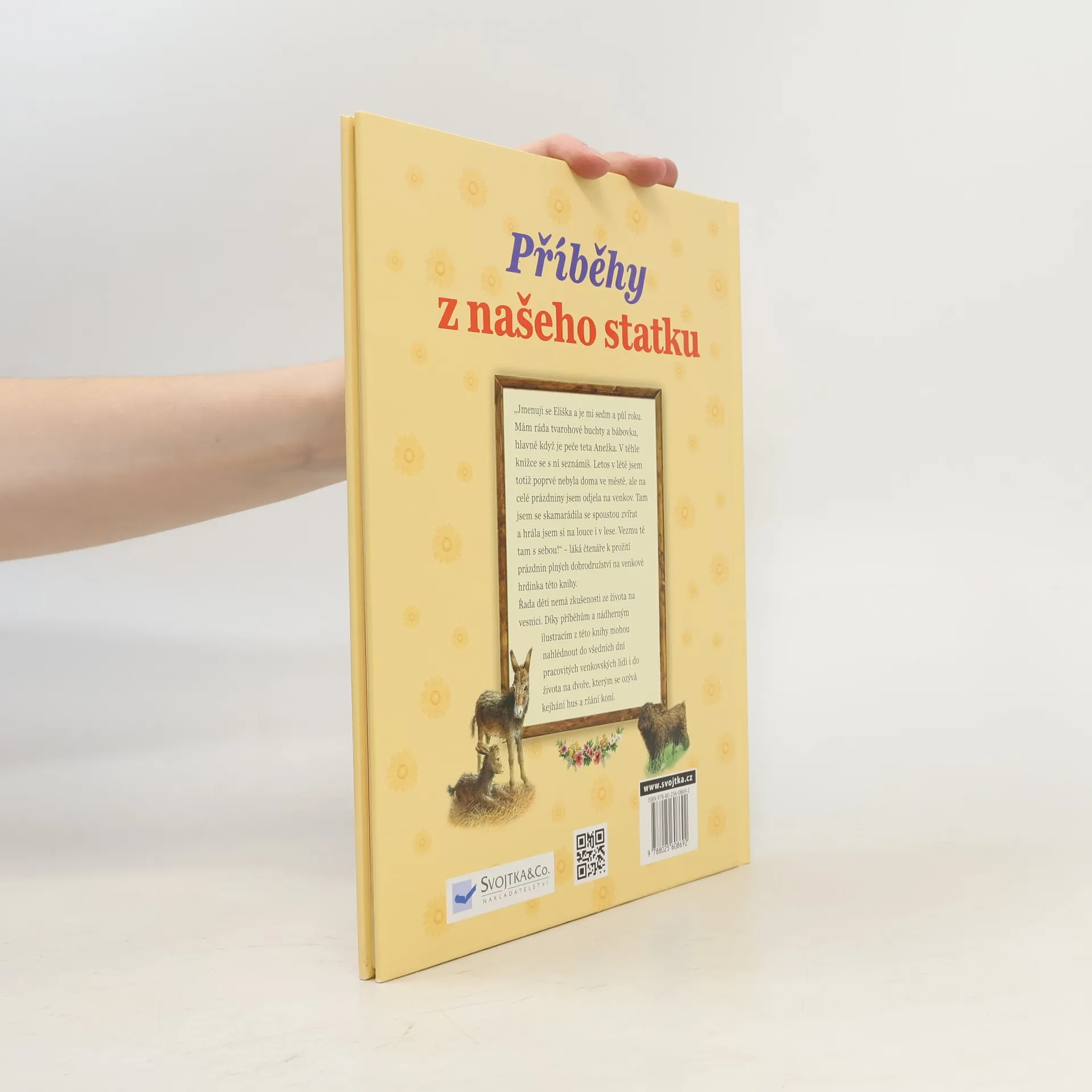 Jmenuji se Eliška. Je mi sedm a půl roku. Mám ráda tvarohové knedlíky a bábovku od mé tetičky. Poprvé jsem opustila velké moderní město, ve kterém bydlím s rodiči, a odjela jsem na venkov. Tam jsem se spřátelila se zvířátky, objevila jsem louku a les. Pojď se mnou prožít prázdniny na venkově plné dobrodružství... Většina dětí nemá bezprostřední zkušenosti se životem na venkově. Díky příběhům a nádherným ilustracím v této knize mohou děti nahlédnout do všedních dnů života na venkově, například do dění na dvoře, kterým se celý den rozléhá kejhání hus, kvokání slepic a řehtání koní, a společně s hlavní hrdinkou zažít mnoho zajímavých dobrodružství.