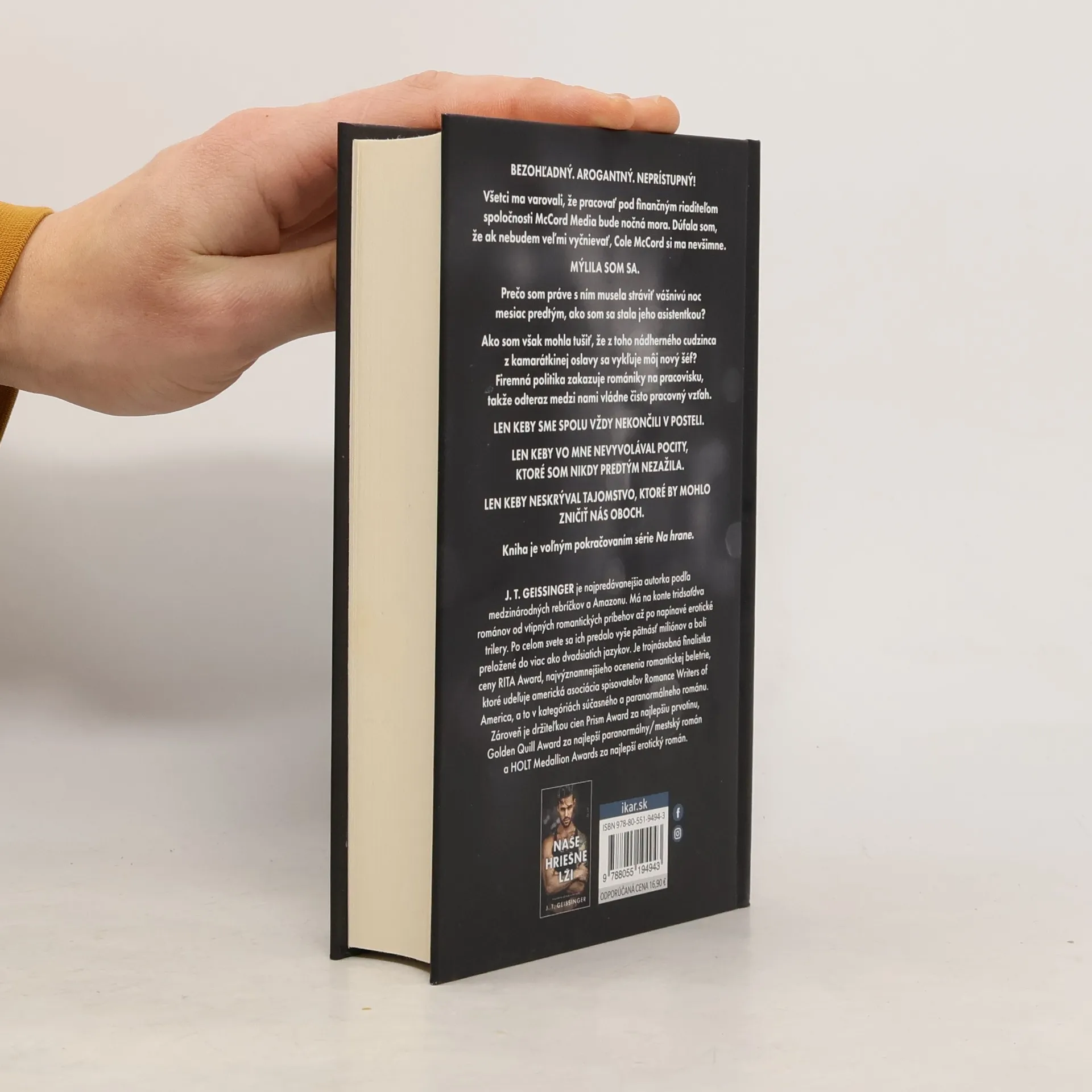 Iskrí to medzi nimi, ale ich vzťah je zakázaný Bezohľadný. Arogantný. Neprístupný! Všetci ma varovali, že pracovať pod finančným riaditeľom spoločnosti McCord Media bude nočná mora. Dúfala som, že ak nebudem veľmi vyčnievať, Cole McCord si ma nevšimne. Mýlila som sa. Prečo som práve s ním musela stráviť jedinú vášnivú noc mesiac predtým, ako som sa stala jeho asistentkou? Ale ako som mohla tušiť, že z toho nádherného cudzinca z kamarátkinej oslavy sa vykľuje môj nový šéf. No firemná politika zakazuje romániky na pracovisku, takže odteraz vládne medzi nami čisto pracovný vzťah. Len keby sme spolu neustále nekončili v posteli. Len keby vo mne nevyvolával pocity, ktoré som nikdy predtým nezažila. Len keby neskrýval tajomstvo, ktoré by nás mohlo oboch zničiť. Kniha je voľným pokračovaním zo série Na hrane