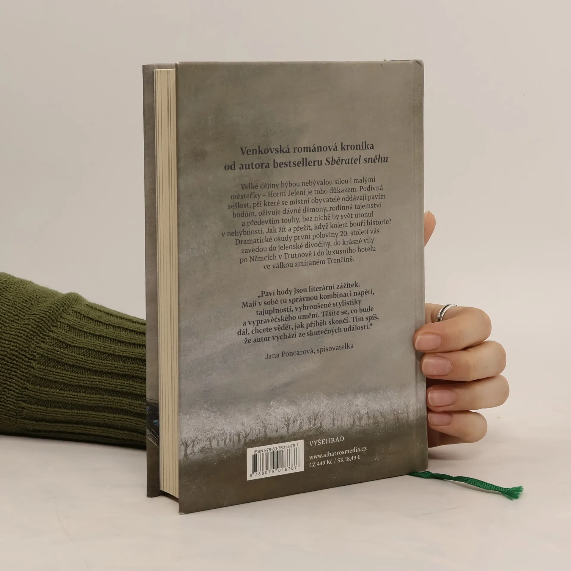 Venkovská románová kronika od autora bestselleru Sběratel sněhu Velké dějiny hýbou nebývalou silou i malými městečky – Horní Jelení je toho důkazem. Podivná sešlost, při které se místní obyvatelé oddávají pavím hodům, oživuje dávné démony, rodinná tajemství a především touhy, bez nichž by svět utonul v nehybnosti. Jak žít a přežít, když kolem bouří historie? Dramatické osudy první poloviny 20. století vás zavedou do jelenské divočiny, do krásné vily po Němcích v Trutnově i do luxusního hotelu ve válkou zmítaném Trenčíně.