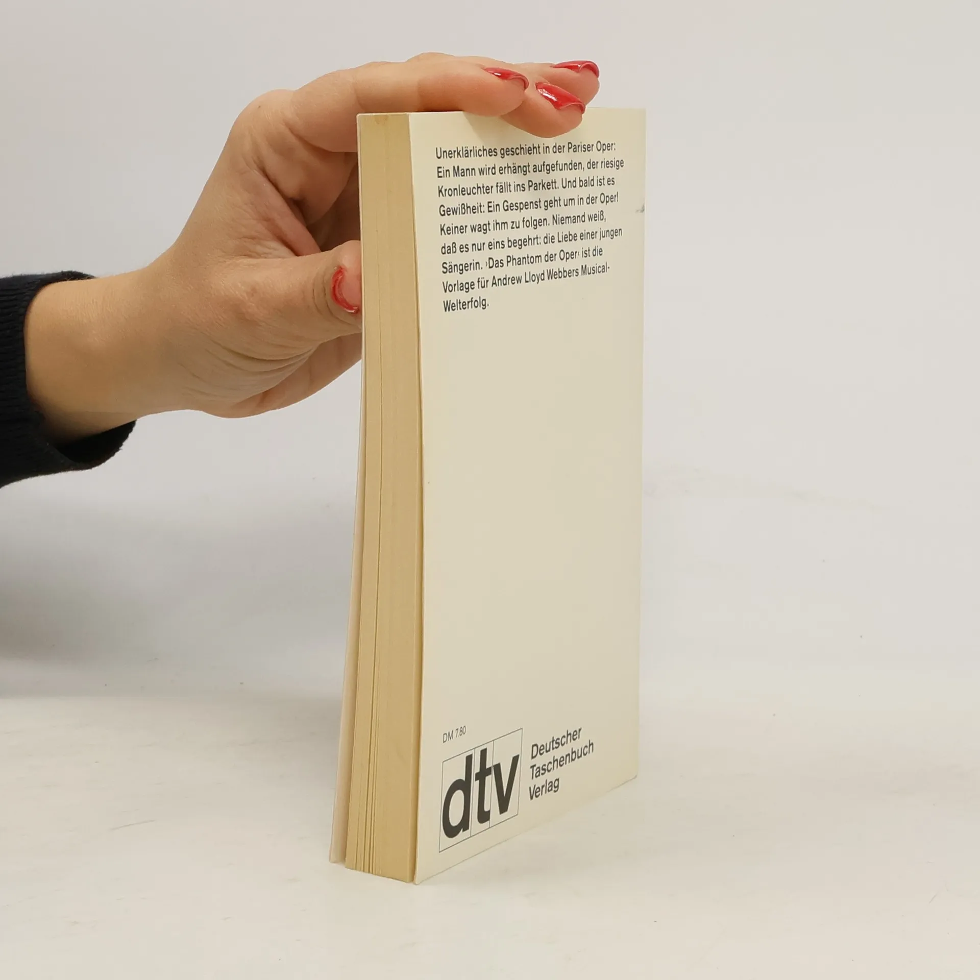 In den geheimnisumwobenen Gewölben der Pariser Oper hält sich ein unsagbar häßlicher Mensch verborgen. Um die Liebe einer jungen Sängerin zu gewinnen, ist ihm jedes Mittel recht; aus der Oper wird ein Tollhaus, die Ereignisse überstürzen sich. Leroux' Kriminalklassiker wurde bereits mehrfach verfilmt. Deutsche Leser, die nach der Gänsehaut erzeugenden Lektüre des Romans noch nicht genug haben, können sich die »Visionen der Hölle« (FAZ) in Hamburg im eigens hierfür gebauten Flora-Theater mit Wagner-Tenor Peter Hoffmann in der Titelrolle ansehen.