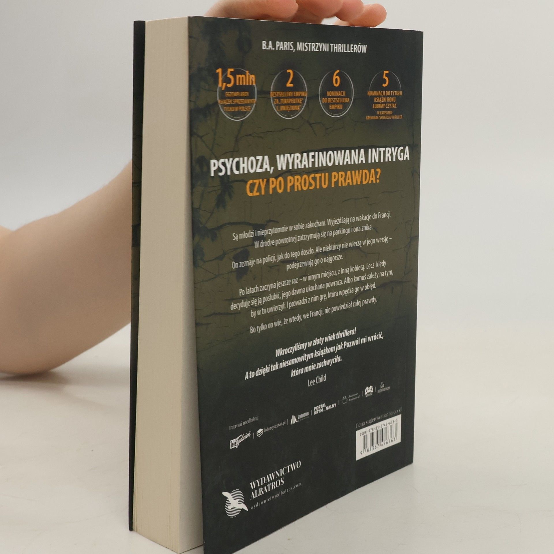 Powieść autorki bestsellerowych thrillerów Za zamkniętymi drzwiami oraz Na skraju załamania ONA ZNIKNĘŁA Fin i Layla, młodzi i nieprzytomne w sobie zakochani, wyjeżdżają na wakacje do Francji. W drodze zatrzymują się w nocy na parkingu i kiedy Fin wraca z toalety, jego dziewczyny nigdzie nie ma. ON SKŁAMAŁ Fin opowiada policji, o tym, co zdarzyło się tej nocy. Są tacy, co nie wierzą w jego wersję i podejrzewają go o najgorsze. Nawet po latach. I tylko Fin wie, że nie powiedział policji całej prawdy. NOWE ŻYCIE Po dziesięciu latach zaczyna jeszcze raz w innym miejscu, z inną kobietą. I tak się akurat złożyło, że jest nią siostra jego zaginionej dziewczyny. Kiedy się zaręczają, Fin dostaje telefon. Ktoś z jego przeszłości widział Laylę. Ktoś podrzuca znaki kojarzące się jednoznacznie z Laylą. Ktoś wysyła mu maile, które doprowadzają go na skraj szaleństwa. Fin zaczyna podejrzewać wszystkich i coraz bardzie wierzy w to, że jego dawna ukochana żyje. I że jest bliżej, niż mu się wydaje. Wkroczyliśmy w złoty wiek thrillera! A to dzięki tak niesamowitym książkom jak Pozwól mi wrócić, która mnie zachwyciła. Lee Child