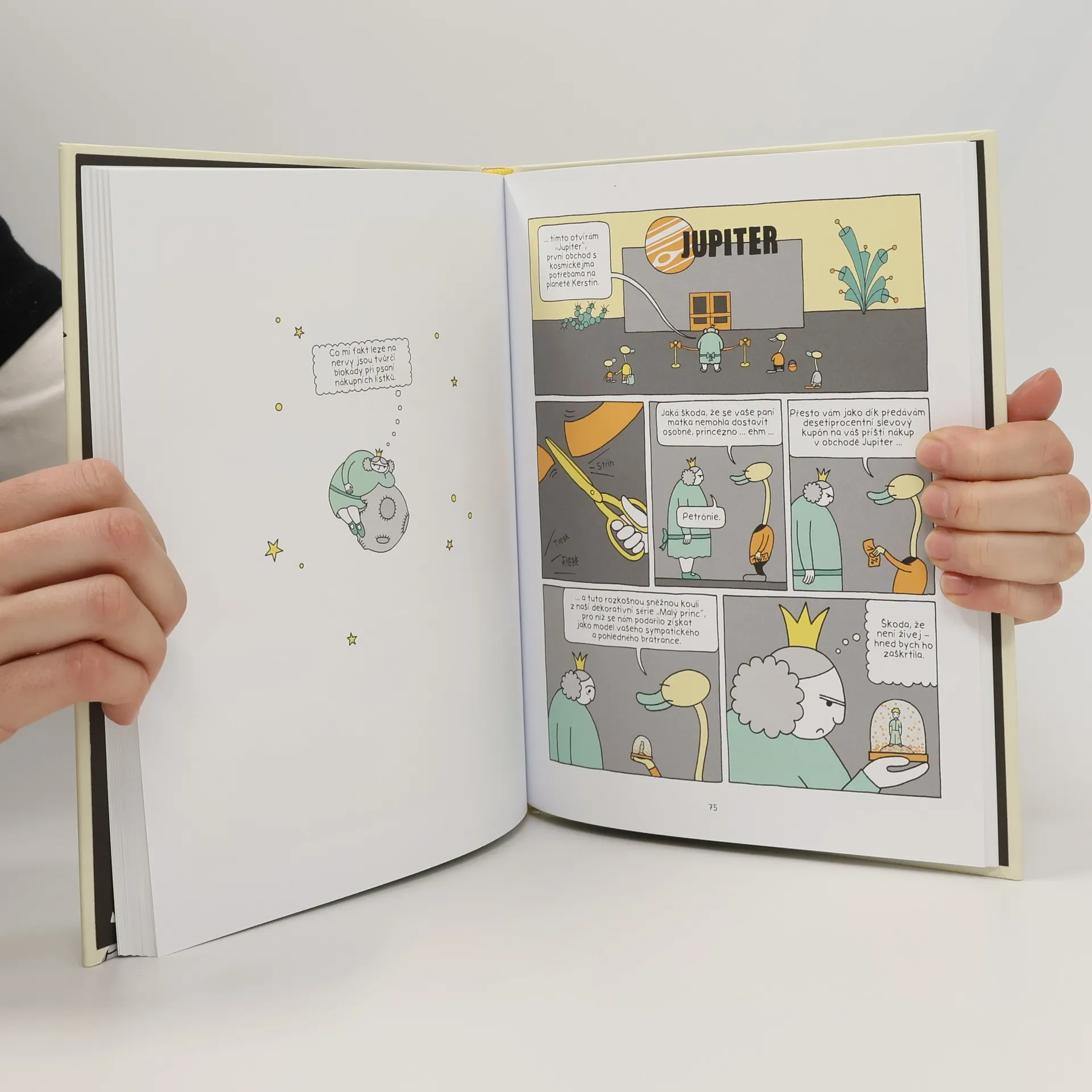 Celý vesmír zbožňuje malého prince, který všechno „vidí srdcem“, ale nikdo si nevšímá jeho sestřenice, tlusté princezny Petrónie. Ta je na rozdíl od roztomilého malého chlapečka věčně naštvaná a zcela nesentimentální. Nesplňuje žádné princeznovské klišé: nasnáší růžové volánky, ale zato miluje matematiku. Malý princ obývá samozřejmě také větší planetu, zatímco Petrónie žije na nejmenší a nejnudnější planetě celého vesmíru. Za pomocí multifunkční žížaly Mirky se pokouší zpestřit si svůj bezútěšný život, cestuje skrze žížalí tunely vesmírem, zkouší se setkat s Davidem Bowiem – to vše většinou bez úspěchu. Absurdně komická dobrodružství, jež Petrónie zažívá, citují motivy z Malého prince, pohádek, science fiction nebo klasiky jako např. Faust. Také graficky mají řadu odkazů, kresby se podobají tu reklamnímu letáku, tu zas hernímu plánu nebo návodu na slepovánky.