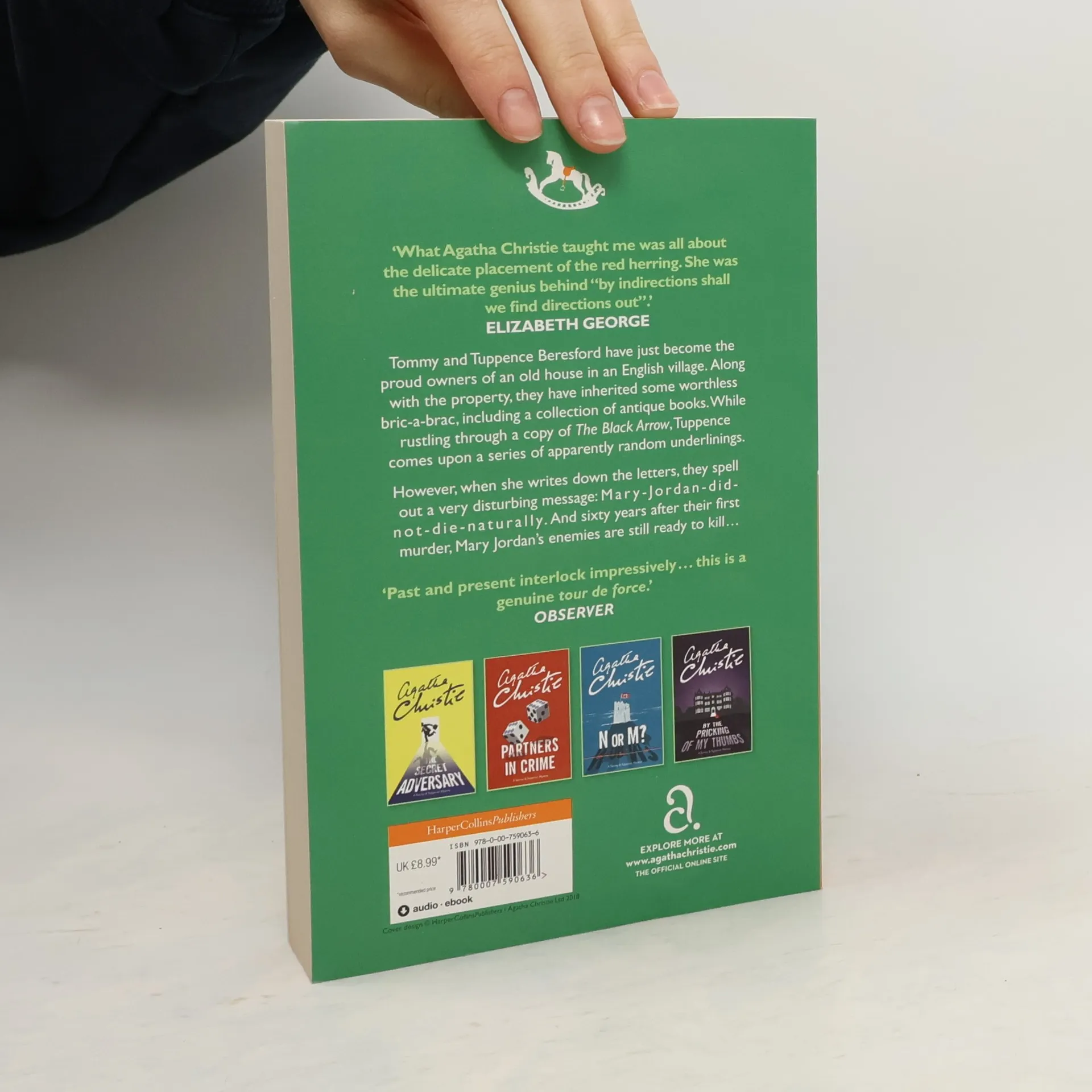 A poisoning many years ago may not have been accidental after all... Tommy and Tuppence Beresford have just become the proud owners of an old house in an English village. Along with the property, they have inherited some worthless bric-a-brac, including a collection of antique books. While rustling through a copy of The Black Arrow, Tuppence comes upon a series of apparently random underlinings. However, when she writes down the letters, they spell out a very disturbing message:M a r y - J o r d a n - d i d - n o t - d i e - n a t u r a l l y...And sixty years after their first murder, Mary Jordan's enemies are still ready to kill...