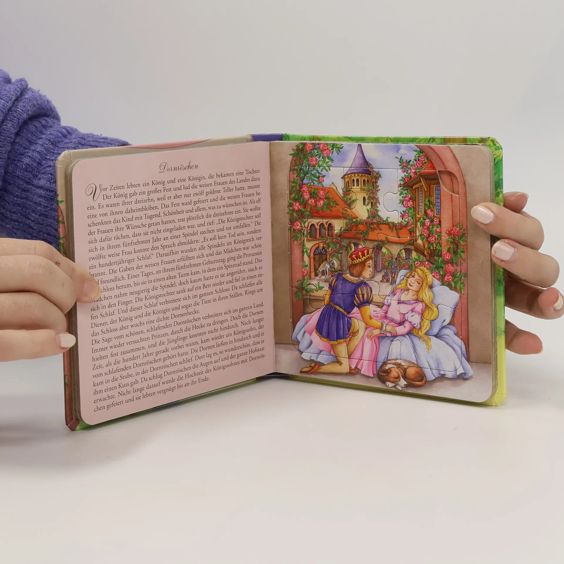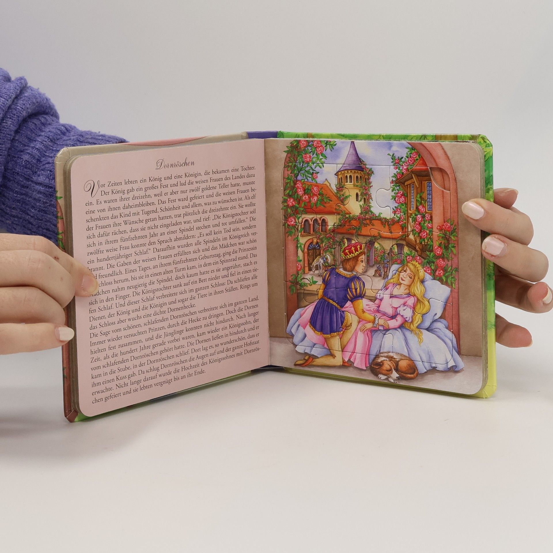Dieses Puzzlebuch mit wunderschönen Illustrationen bringt fünf beliebte Märchen zum Leben: Der gestiefelte Kater, Hänsel und Gretel, Dornröschen, Der Wolf und die sieben Geißlein sowie Rotkäppchen. Es bietet Rätselaufgaben unter den Puzzles und ist ideal für Märchen-Fans ab drei Jahren.