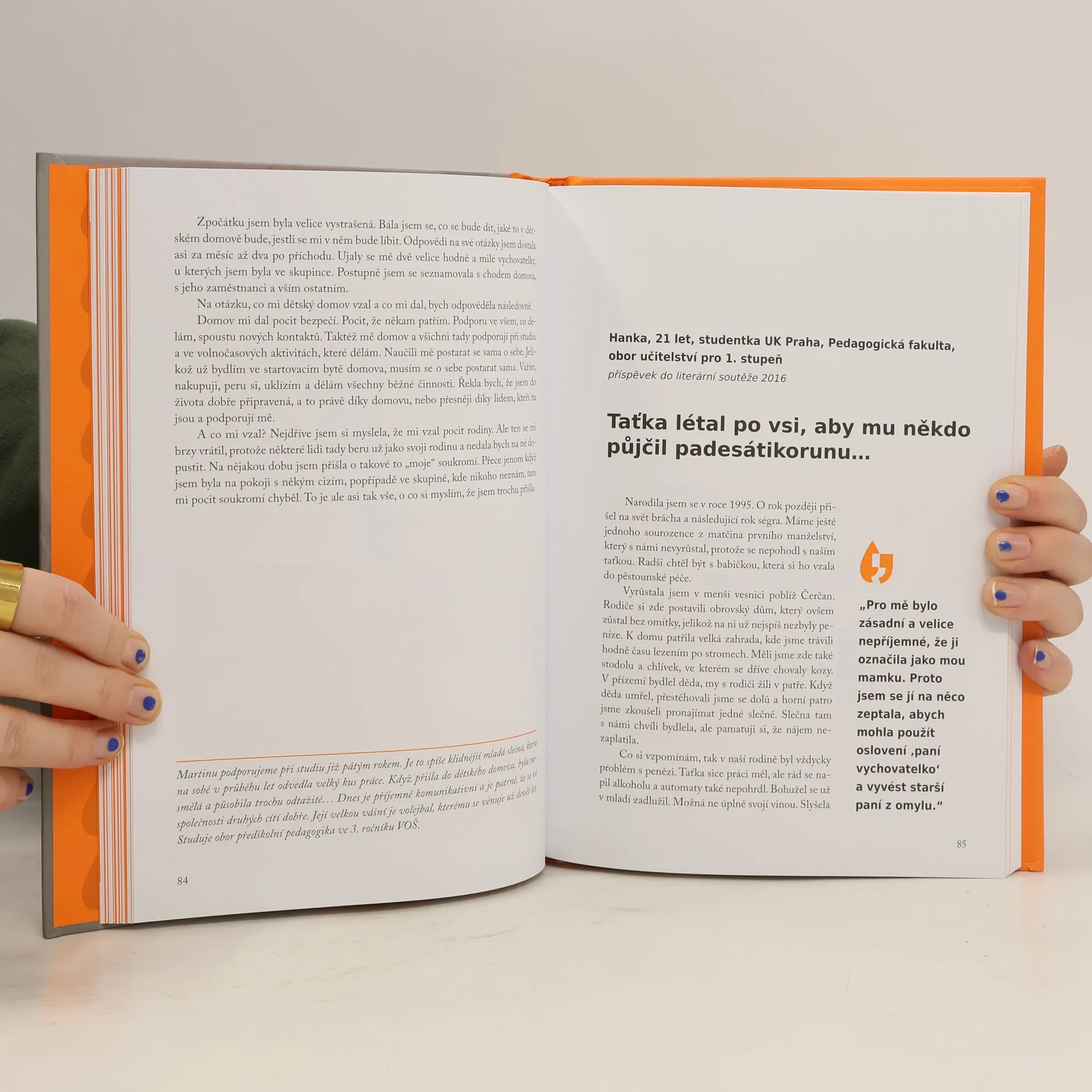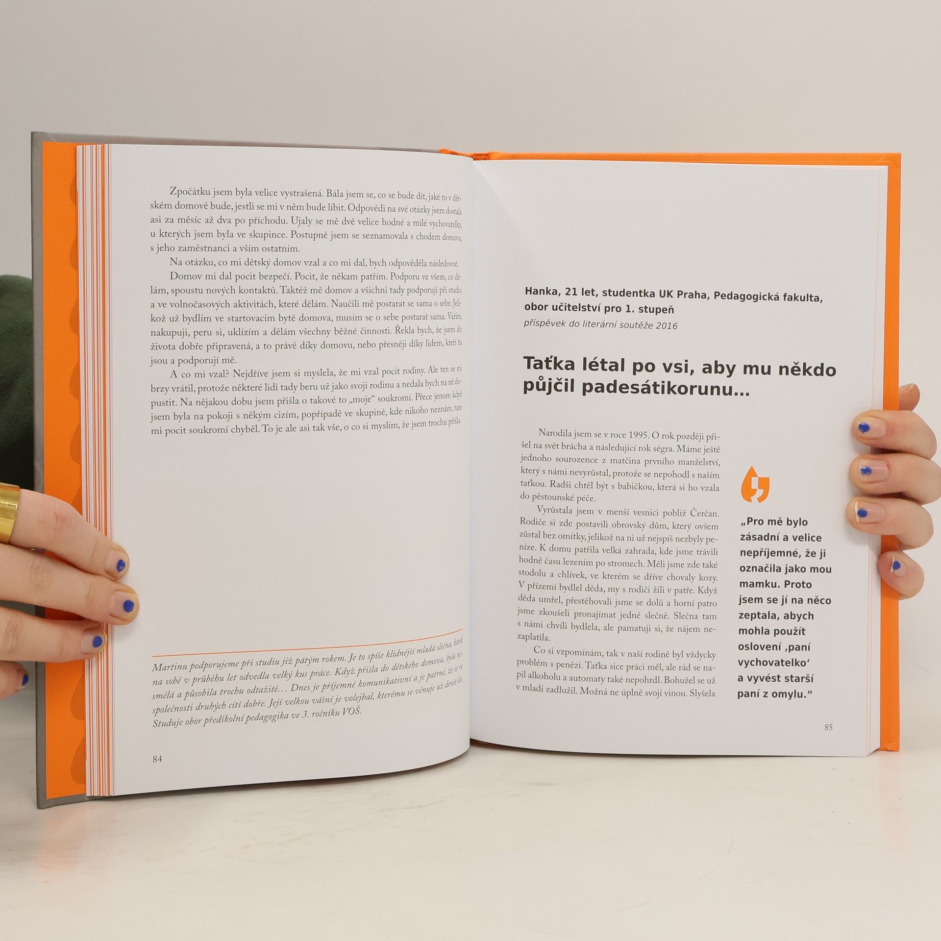 Kdo vlastně jsou „děti vyrůstající v dětských domovech“? Odkud do dětských domovů přicházejí a proč? Co mají za sebou? Jaká mají přání a sny? Jak to v běžném dětském domově vypadá? Mezi veřejností přežívá názor, že dětský domov je to nejhorší, co může dítě potkat. Pro mnoho skvělých a šikovných mladých lidí dětský domov znamenal záchranu, a to v mnoha případech doslova. Organizace Dejme dětem šanci si dala za cíl zažité mýty vyvracet. Autentické příběhy dětí a mladých lidí, kteří strávili část života v dětském domově, vám poskytnou odpovědi na tyto otázky a ještě mnohem víc…