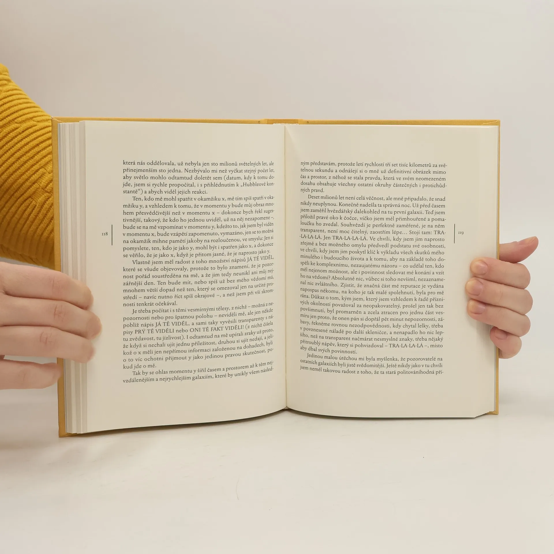 Kosmické grotesky vznikaly v šedesátých letech 20. století a Italo Calvino jimi definitivně opouštěl klasické vyprávěcí postupy, neboť patřil k autorům, kteří neustále propátrávají nové cesty. Výchozím materiálem těchto povídek tentokrát nebyly lidské příběhy, nýbrž astrofyzikální a matematické teorie o vzniku vesmíru, fyzikální či genetické objevy a také filozofické spekulace. To vše nám zprostředkovává proteovský vypravěč jménem Qfwfq, jenž je – ve svých nekonečných proměnách – obrazem samotného vesmíru. Qfwfq je nejprve soustředěn v bodu, z něhož v důsledku velkého třesku vznikne kosmos, posléze koluje vesmírem jako shluk atomů, je minerálem, podílí se na vývoji druhů, v jisté fázi je mimo jiné i dinosaurem. Rozpomíná se na miliardy let trvající historii světa a to, co si vybavuje, je velmi mnohotvárné a také nanejvýš podivuhodné… Předkládaný nový český překlad poprvé přináší kompletní vydání těchto kosmikomických příběhů.