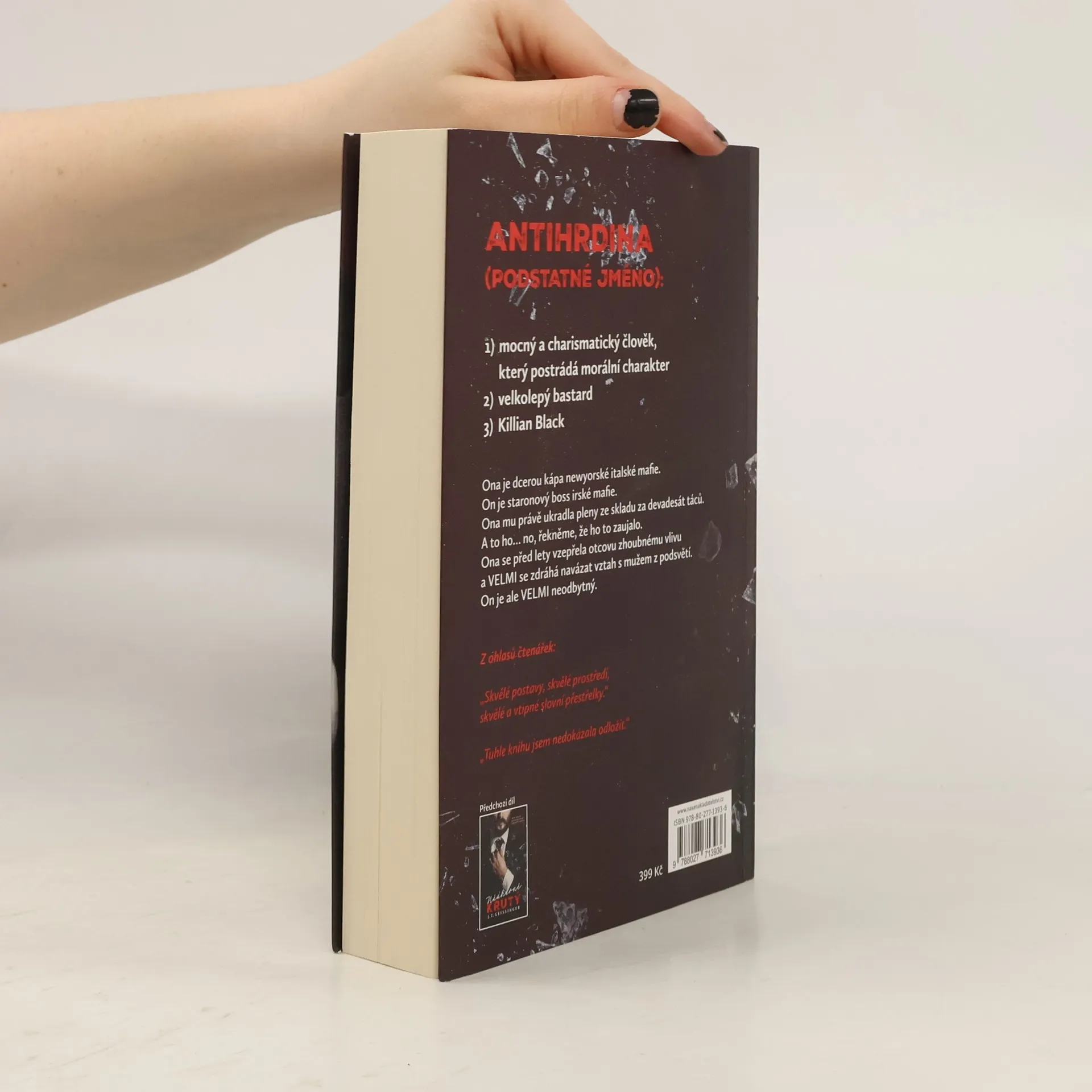 Antihrdina (podstatné jméno): 1) mocný a charismatický člověk, který postrádá morální charakter 2) velkolepý bastard 3) Killian Black Neznáte mě. Myslíte si, že ano, ale mýlíte se. Jediné, co znáte, je moje jméno, ale i to je lež. Jsem král Bostonu, pán zločinců, vládce říše podsvětí. Nebo nejsem? Jisté je jenom jedno: pracuju sám. Dokud se mi do cesty nepostaví malá drzá zlodějka, která celé mé království spálí na popel. Dvě křivdy nevykonají dobro, a to samé platí i o dvou ničemech. Zvlášť když je to dcera mého nejhoršího nepřítele. Přivlastnit si ji by rozpoutalo válku. Udržet si ji by byla sebevražda. Prohlásit ji za svou by porušilo všechny kodexy cti a odporovalo by to zdravému rozumu. Ale na druhou stranu, koho baví dodržovat pravidla?