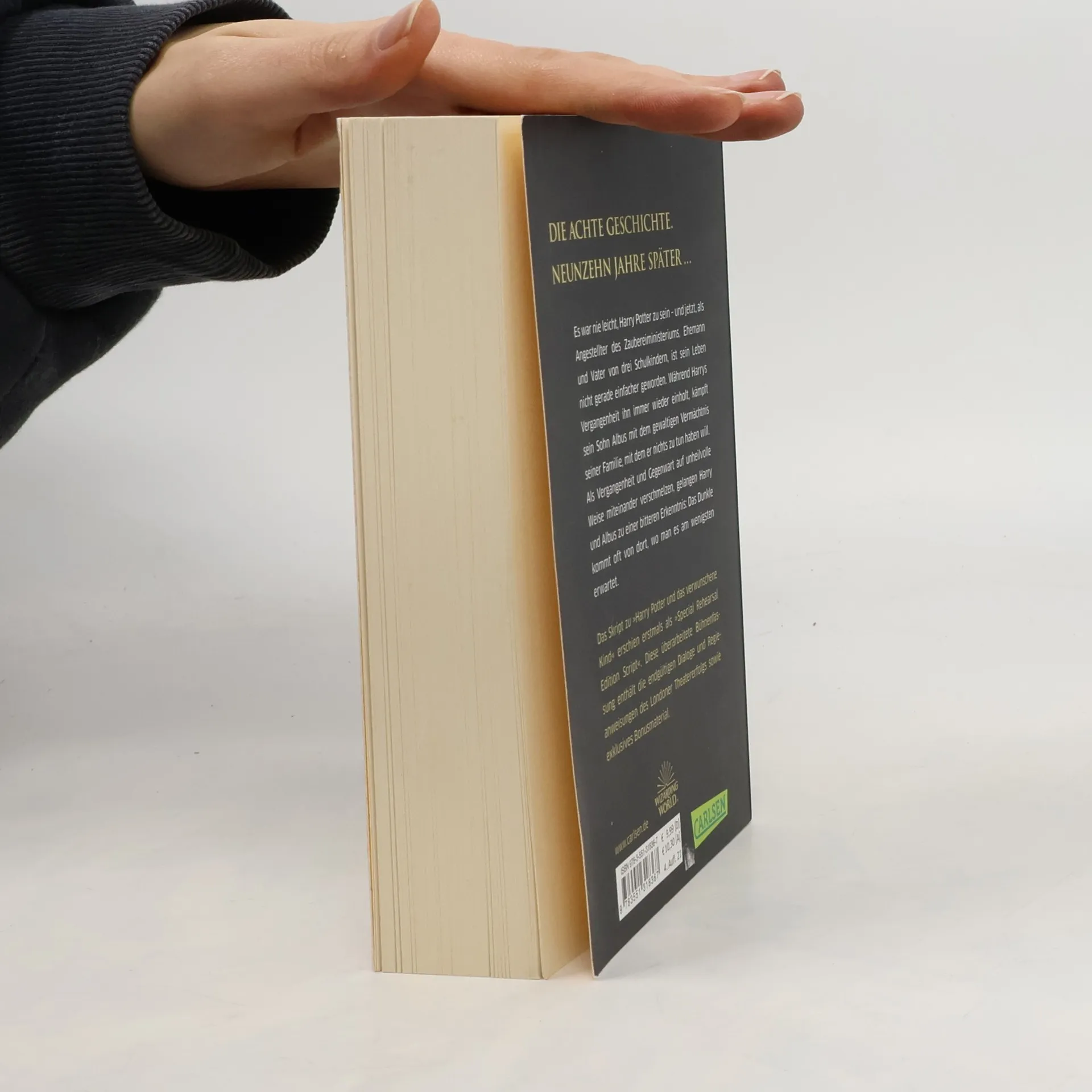 Die achte Geschichte. Neunzehn Jahre später … Es war nie leicht, Harry Potter zu sein – und jetzt, als Angestellter des Zaubereiministeriums, Ehemann und Vater von drei Schulkindern, ist sein Leben nicht gerade einfacher geworden. Während Harrys Vergangenheit ihn immer wieder einholt, kämpft sein Sohn Albus mit dem gewaltigen Vermächtnis seiner Familie, mit dem er nichts zu tun haben will. Als Vergangenheit und Gegenwart auf unheilvolle Weise miteinander verschmelzen, gelangen Harry und Albus zu einer bitteren Erkenntnis: Das Dunkle kommt oft von dort, wo man es am wenigsten vermutet. Das Skript zu »Harry Potter und das verwunschene Kind« erschien erstmals als »Special Rehearsal Edition Script«. Diese überarbeitete Bühnenfassung enthält die endgültigen Dialoge und Regieanweisungen des Londoner Theatererfolgs sowie exklusives Bonusmaterial. Dazu gehören ein Gespräch zwischen dem Regisseur John Tiffany und dem Autor Jack Thorne und nützliche Hintergrundinformationen: der Stammbaum der Familie Potter und eine Chronologie der Ereignisse, die vor Beginn von »Harry Potter und das verwunschene Kind« stattfanden.