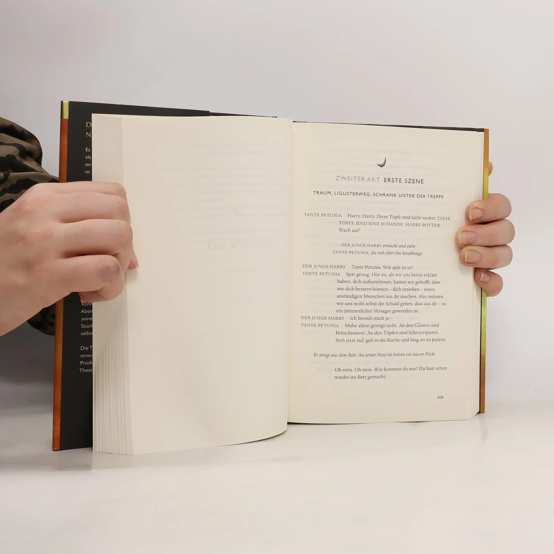 Die achte Geschichte. Neunzehn Jahre später. Das Skript zum Theaterstück! Harry Potter und das verwunschene Kind, basierend auf einer neuen Geschichte von J. K. Rowling, John Tiffany und Jack Thorne, ist ein neues Theaterstück von Jack Thorne. Es erzählt die achte Geschichte in der Harry-Potter-Serie und ist gleichzeitig die erste offizielle Harry-Potter-Geschichte, die auf der Bühne präsentiert wird. Das Stück feierte am 30. Juli 2016 im Londoner West End Premiere. Es war nie leicht, Harry Potter zu sein – und jetzt, als überarbeiteter Angestellter des Zaubereiministeriums, Ehemann und Vater von drei Schulkindern, ist sein Leben nicht gerade einfacher geworden. Während Harrys Vergangenheit ihn immer wieder einholt, kämpft sein Sohn Albus mit dem gewaltigen Vermächtnis seiner Familie, mit dem er nichts zu tun haben will. Als Vergangenheit und Gegenwart auf unheilvolle Weise miteinander verschmelzen, gelangen Harry und Albus zu einer bitteren Erkenntnis: Das Dunkle kommt oft von dort, wo man es am wenigsten erwartet.